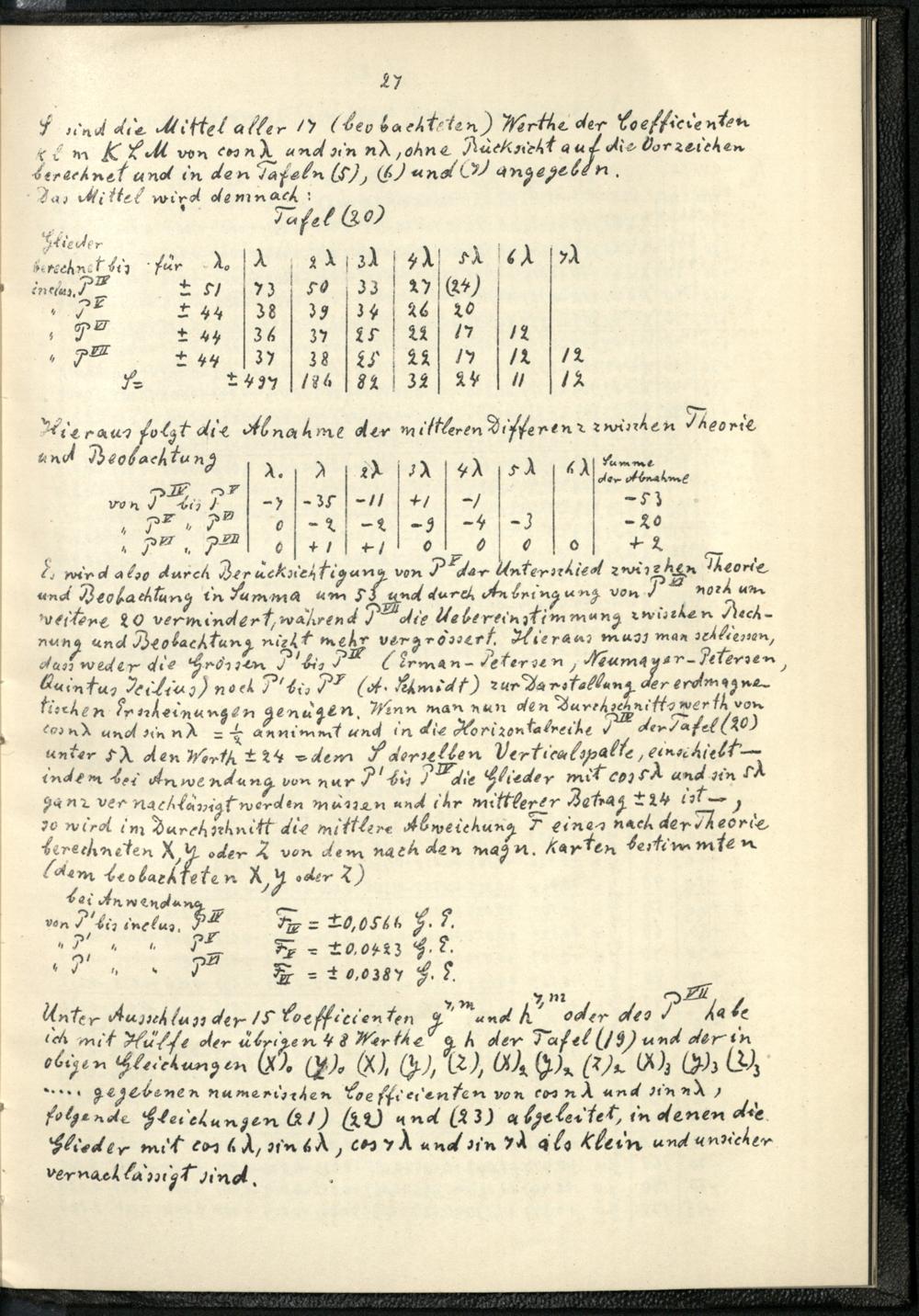 I Ueber die Bestimmung der Coefficienten der Gaussischen " Allgemeinen Theorie des Erdmagnetismus " für das Jahr 1885.