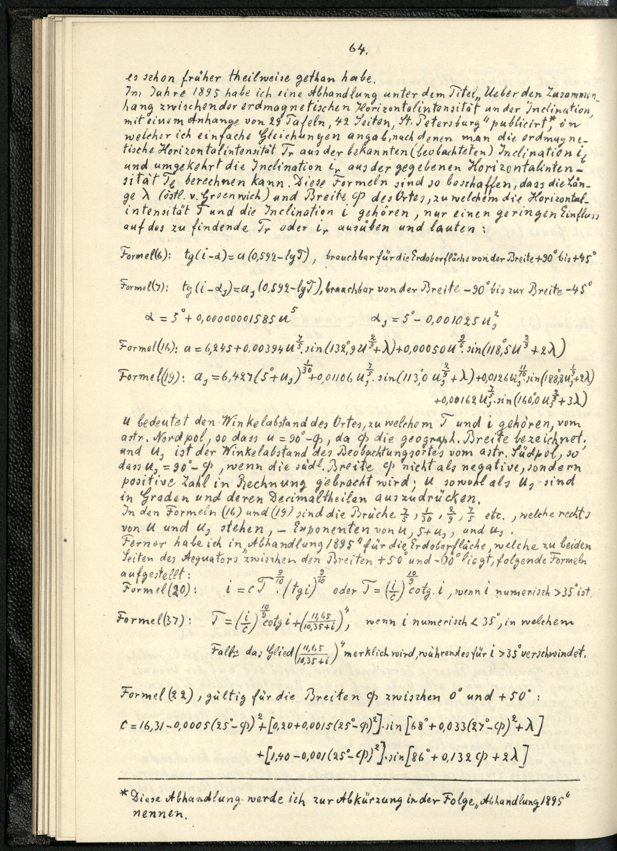 Über die Bestimmung der Coefficienten der Gaussischen allgemeinen Theorie des Erdmagnetismus für das Jahr 1885 und über den Zusammenhang der drei erdmagnetischen Elemente untereinander / von H. Fritsche