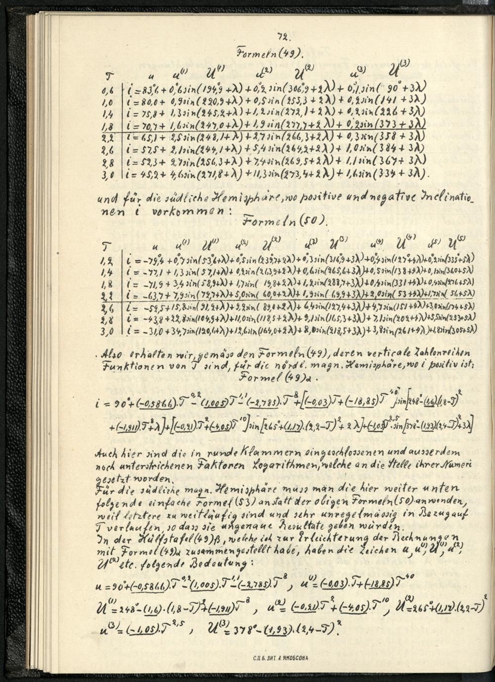 Über die Bestimmung der Coefficienten der Gaussischen allgemeinen Theorie des Erdmagnetismus für das Jahr 1885 und über den Zusammenhang der drei erdmagnetischen Elemente untereinander / von H. Fritsche