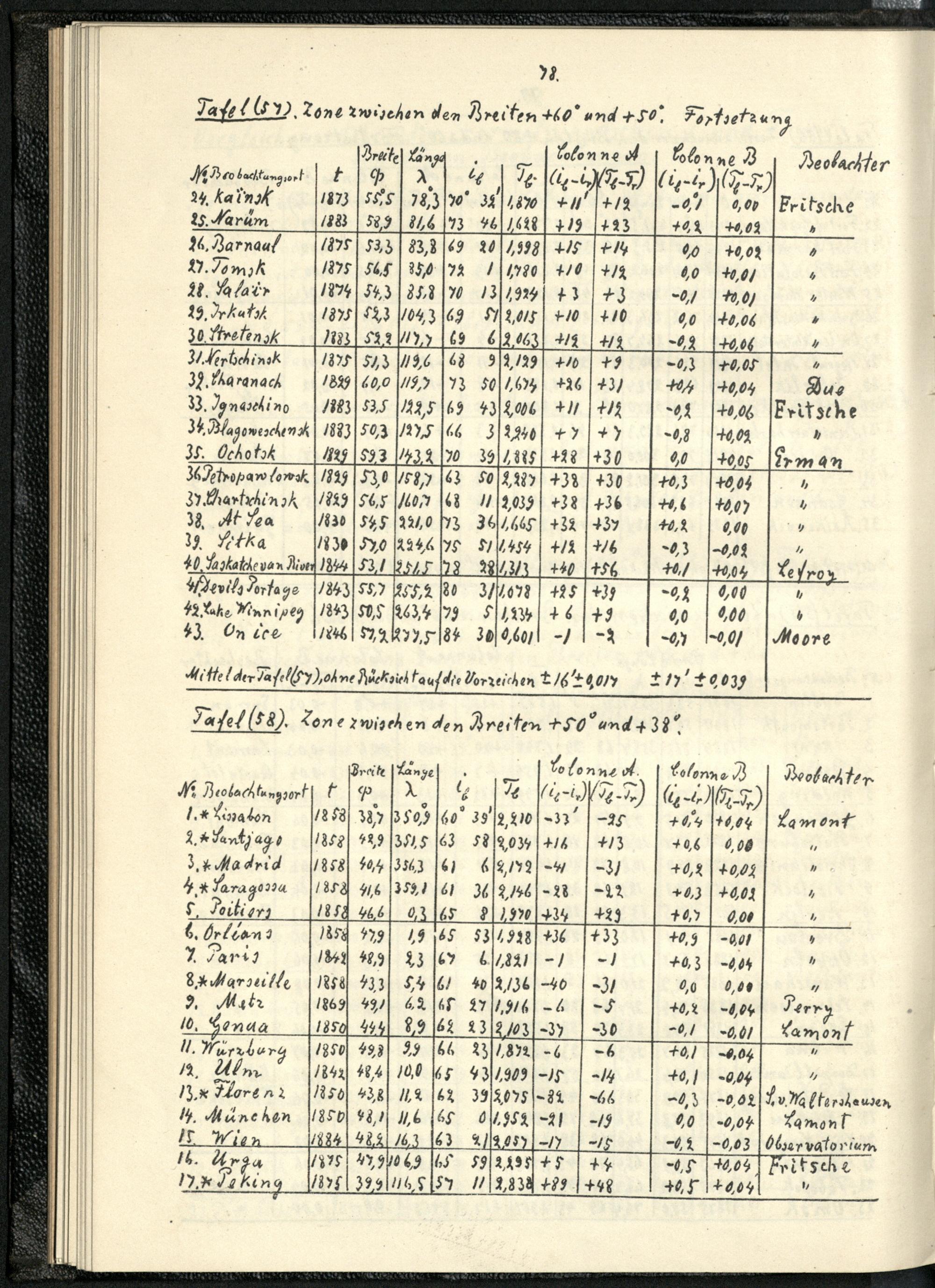 I Ueber die Bestimmung der Coefficienten der Gaussischen " Allgemeinen Theorie des Erdmagnetismus " für das Jahr 1885.