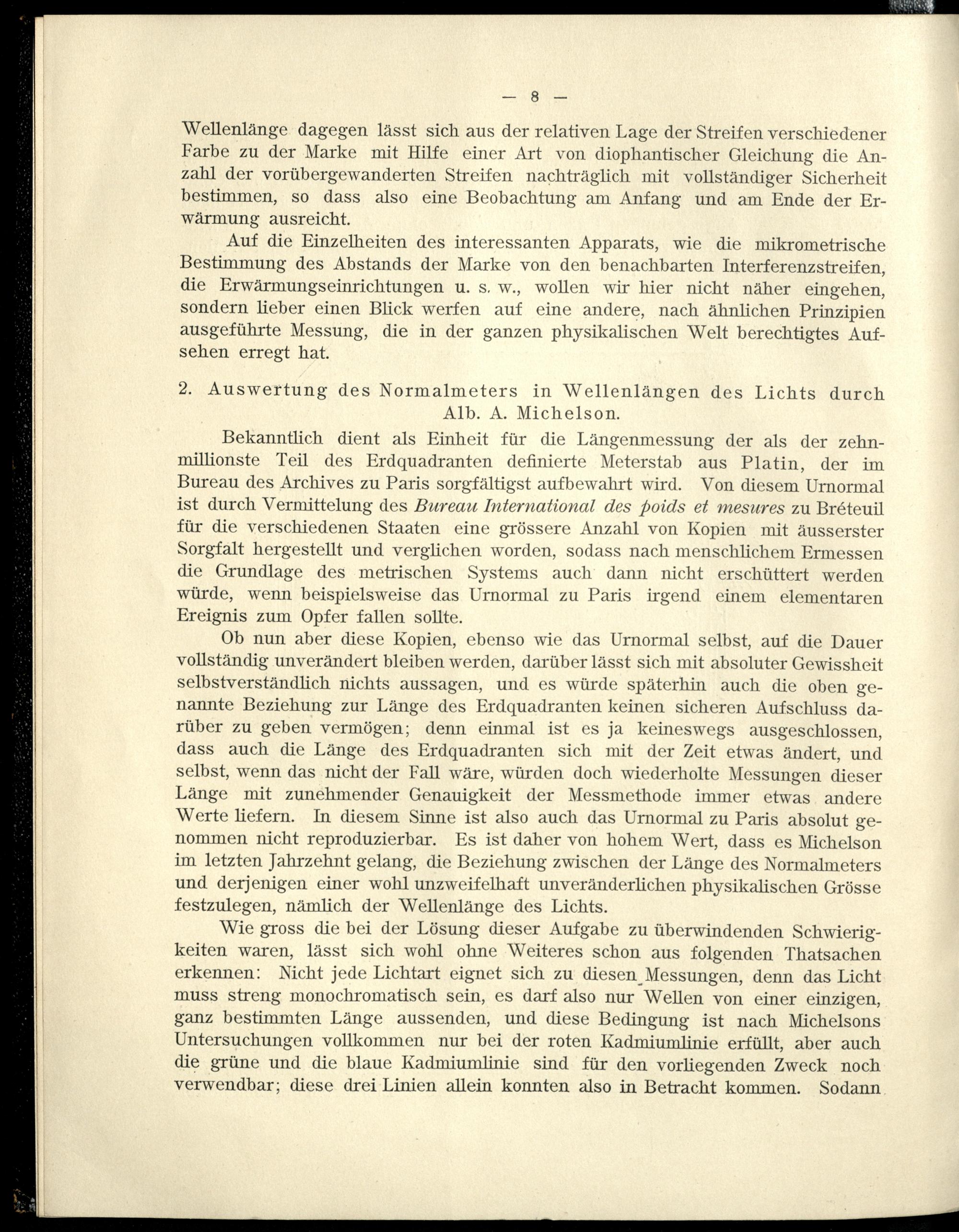 Präcisionsmessungen mit Hülfe der Wellenlänge des Lichts