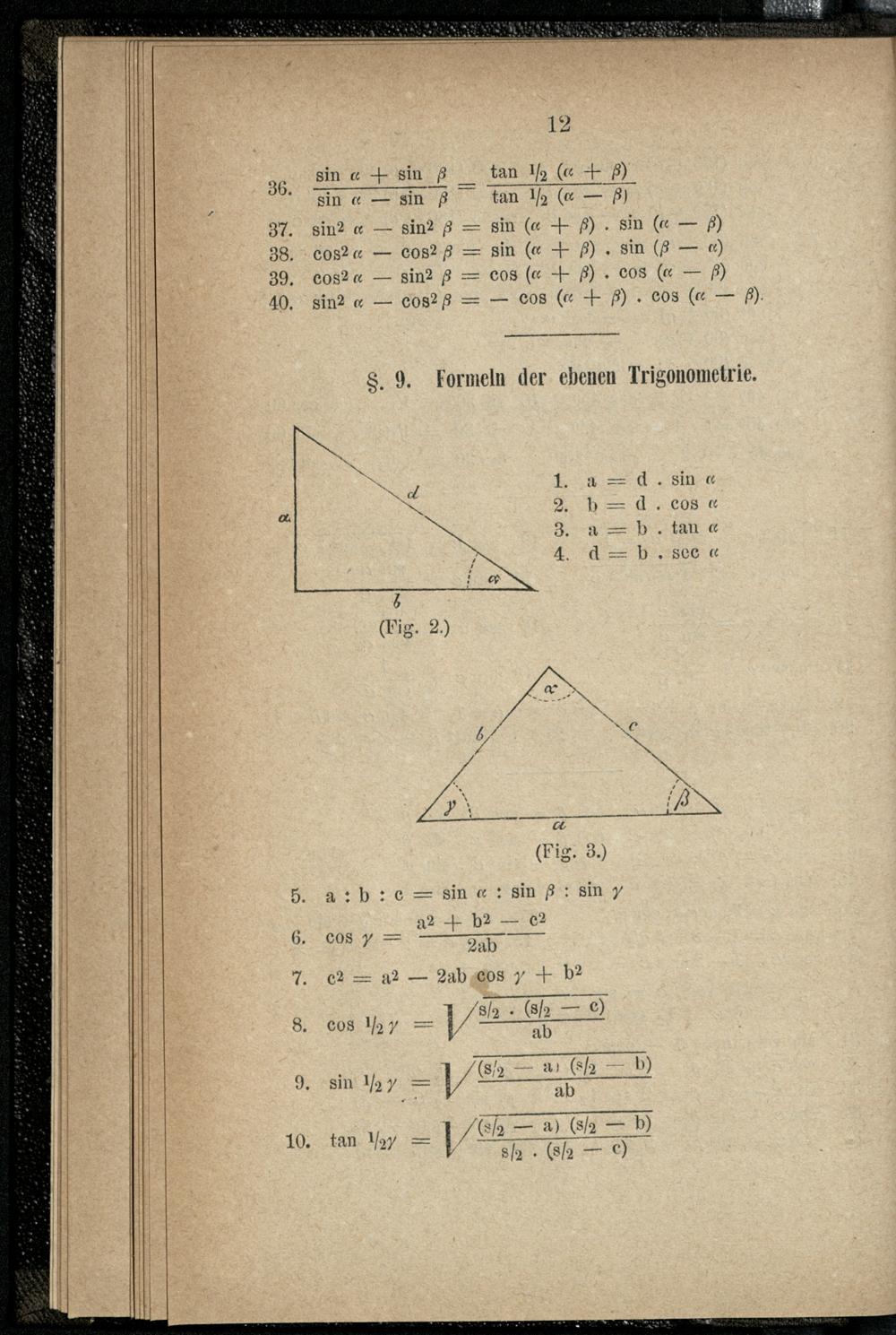 III. Trigonometrische Formeln.