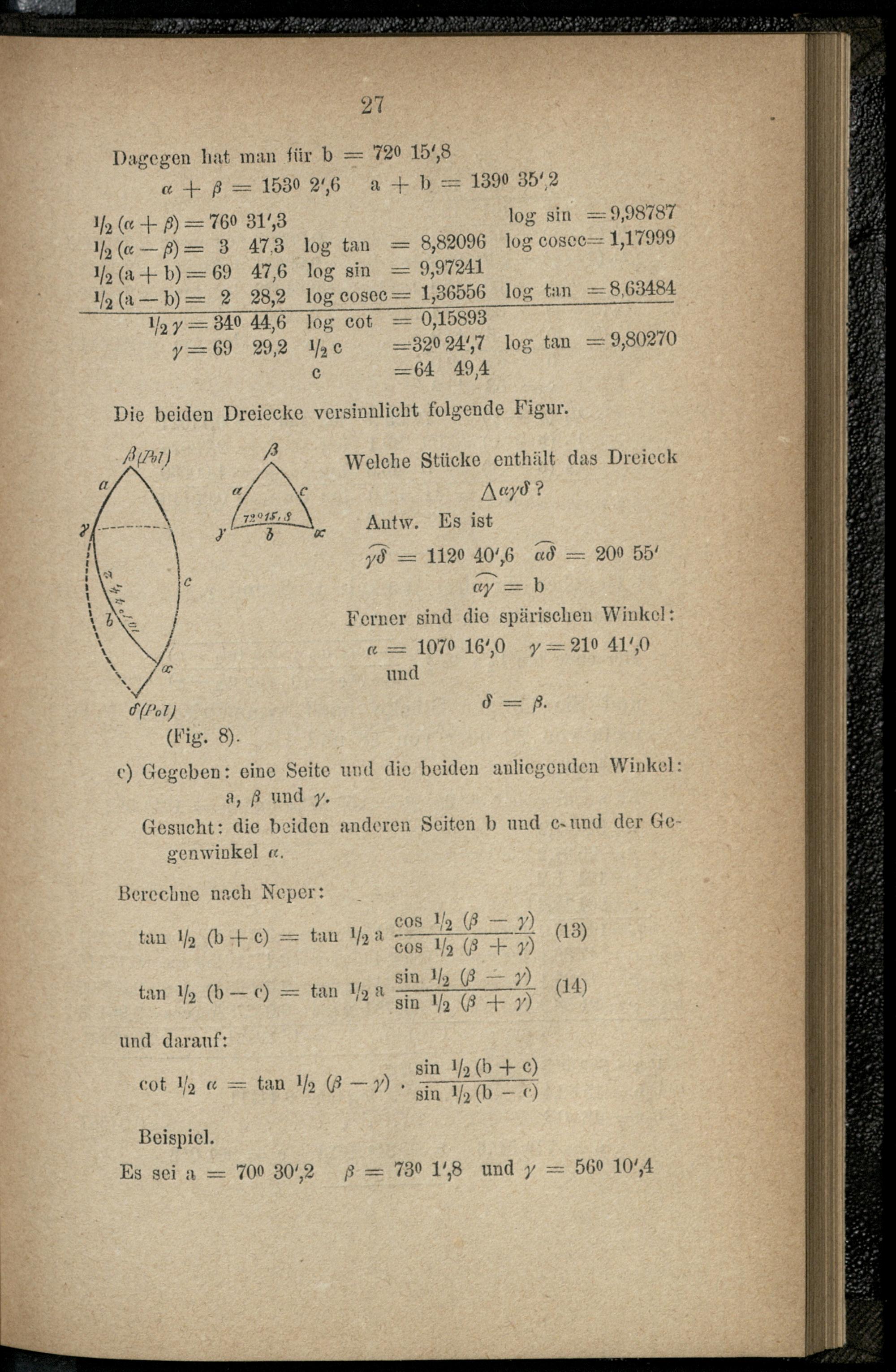 V. Formeln und Beispiele aus der astronomischen Nautik.