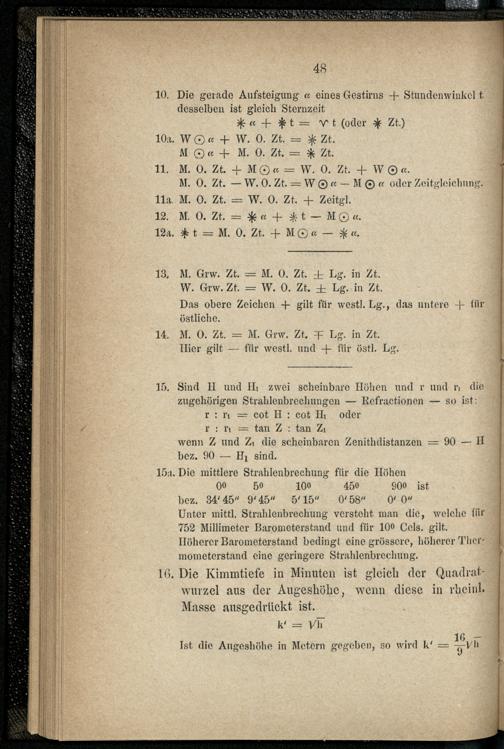 V. Formeln und Beispiele aus der astronomischen Nautik.