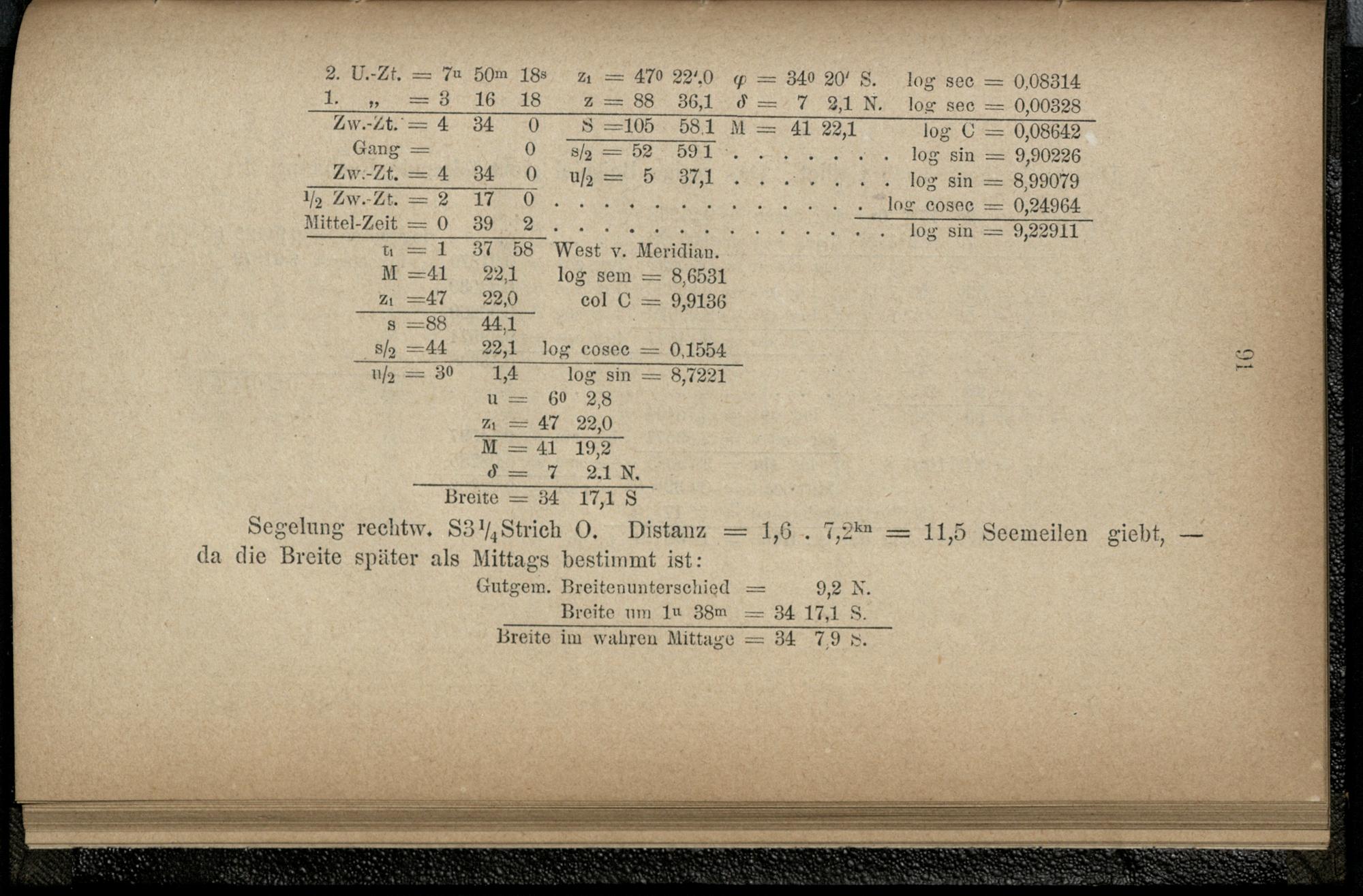 V. Formeln und Beispiele aus der astronomischen Nautik.