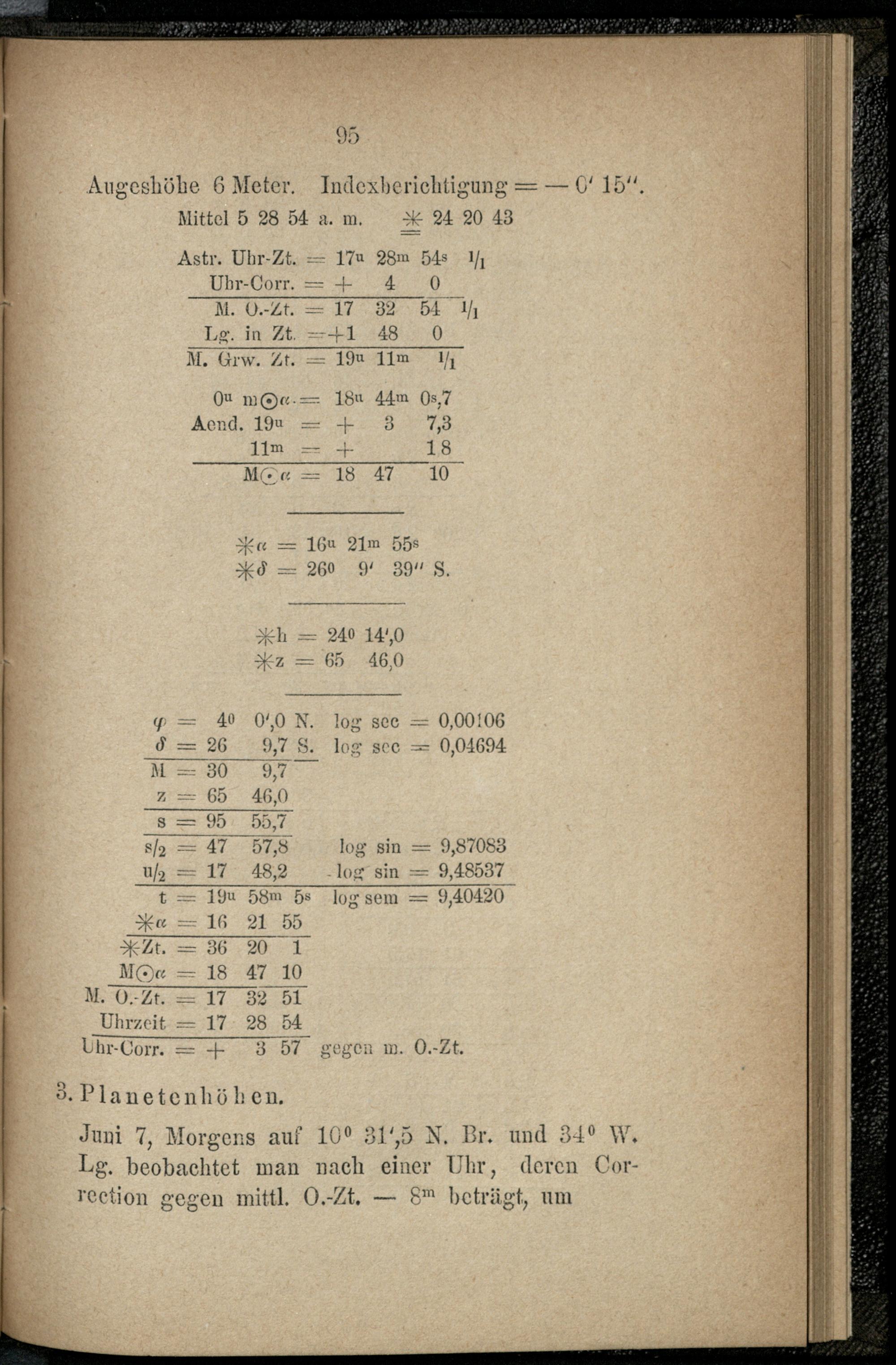 V. Formeln und Beispiele aus der astronomischen Nautik.