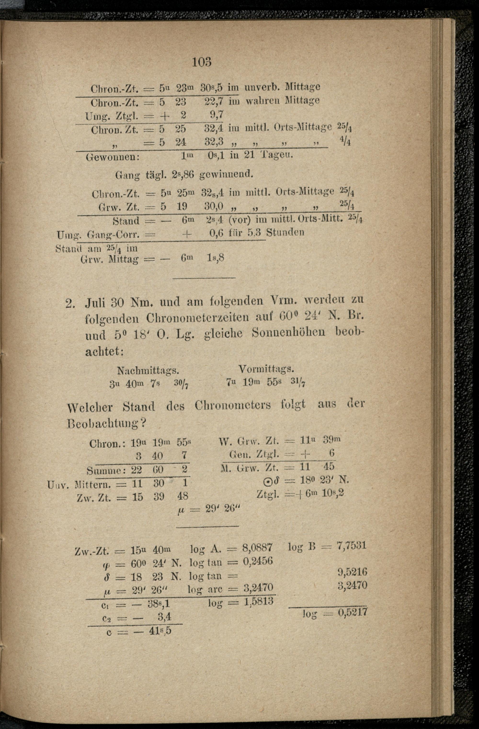 V. Formeln und Beispiele aus der astronomischen Nautik.