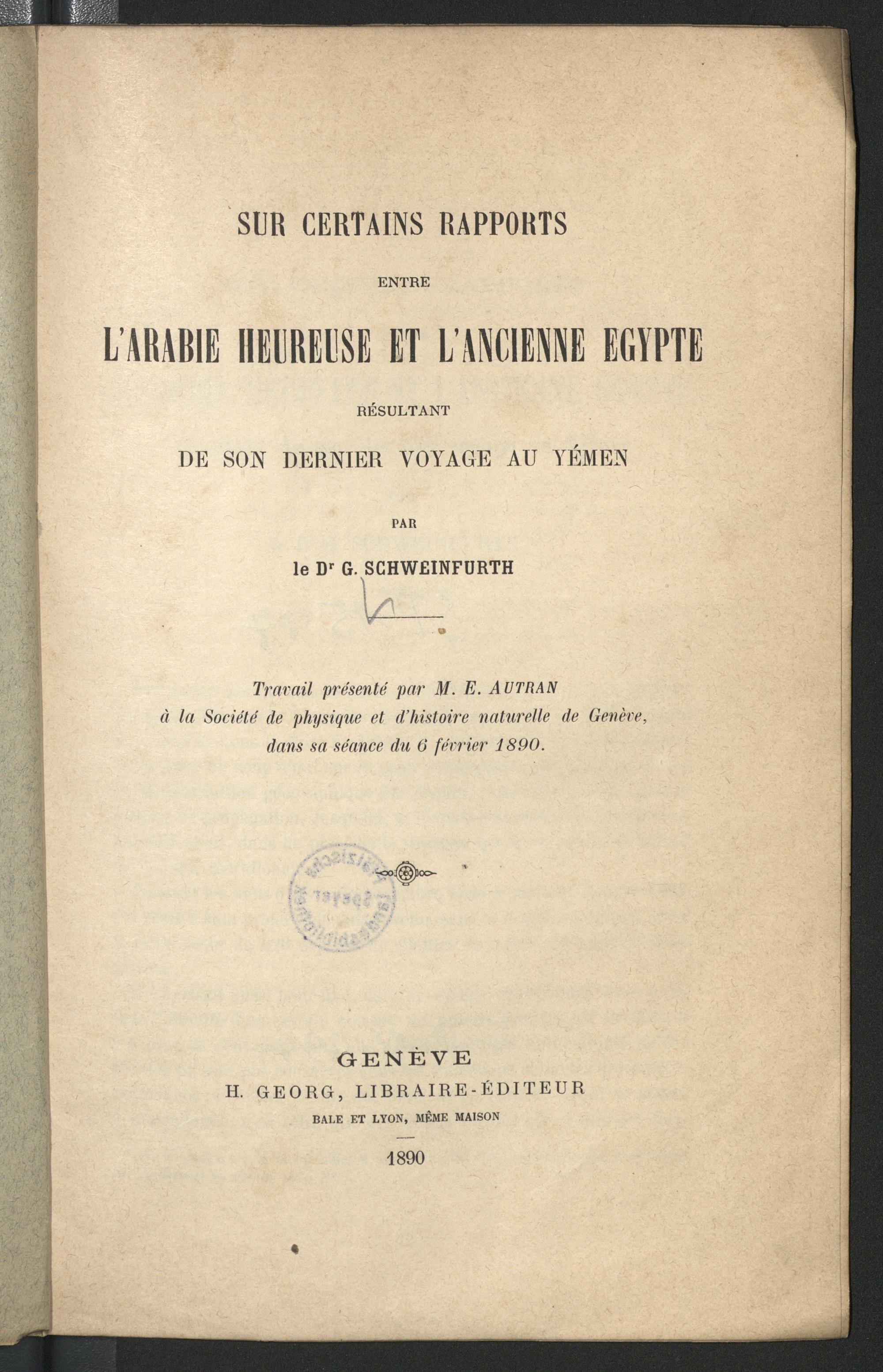 Sur certains rapports entre l'Arabie heureuse et l'ancienne Egypte / Georg Schweinfurth