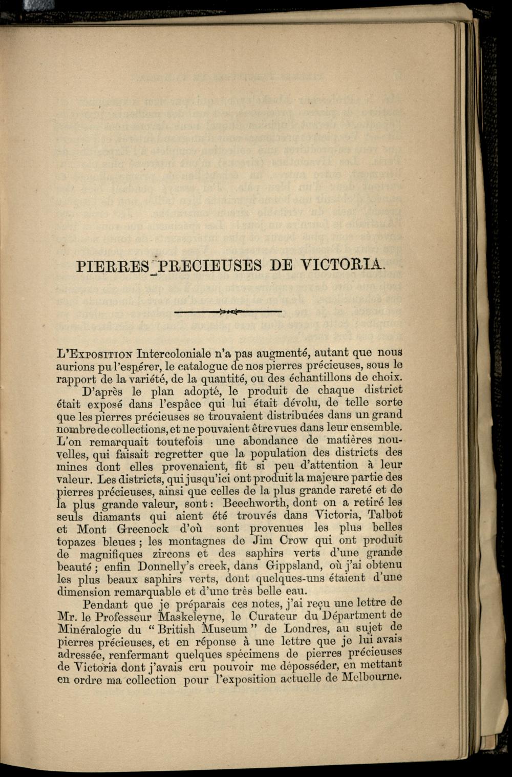 Notes sur les gemmes et les pierres précieuses trouvées dans Victoria