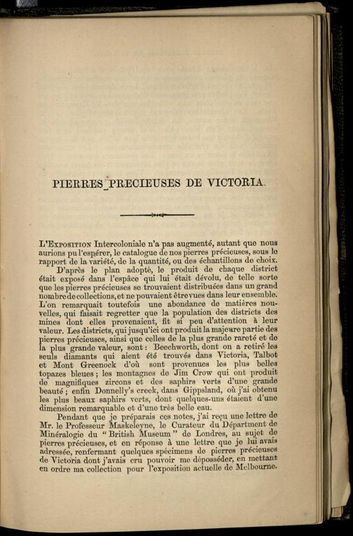 Notes sur les gemmes et les pierres précieuses trouvées dans Victoria / par J. J. Bleasdale
