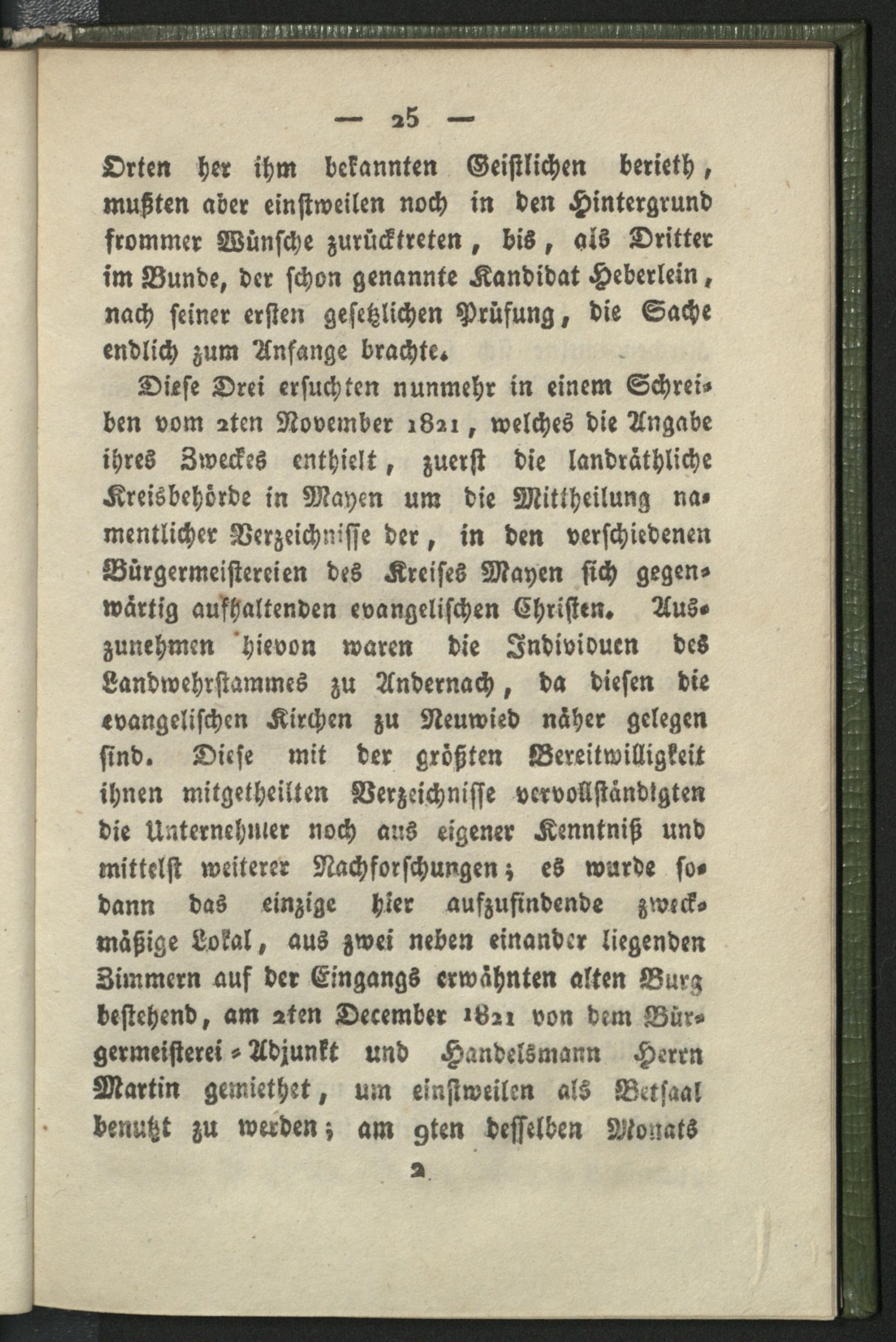 I. Geschichte von der allmähligen Ansiedelung der evangelischen Glaubensgenossen in Mayen und der Umgegend bis zu ihrer kirchlichen Vereinigung.