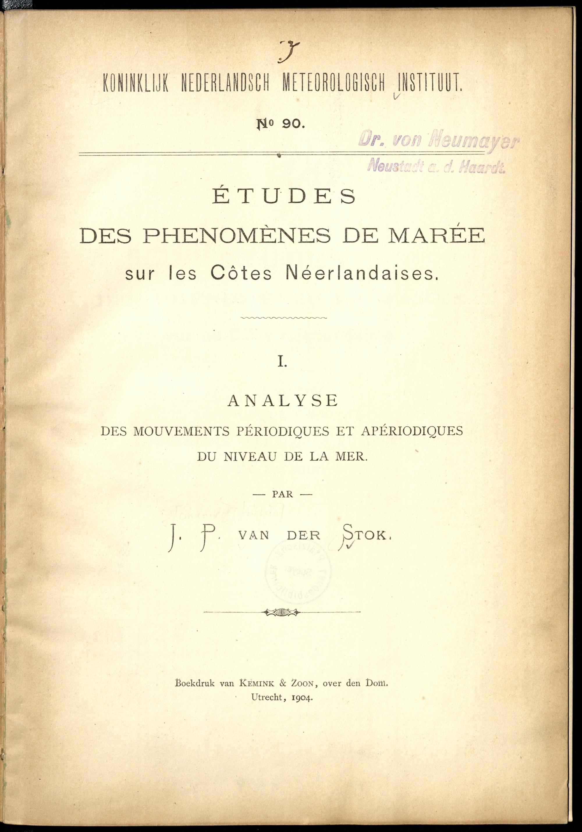 1 (1904) Analyse des mouvements périodiques et apériodiques du niveau de la mer / par J. P. van der Stok