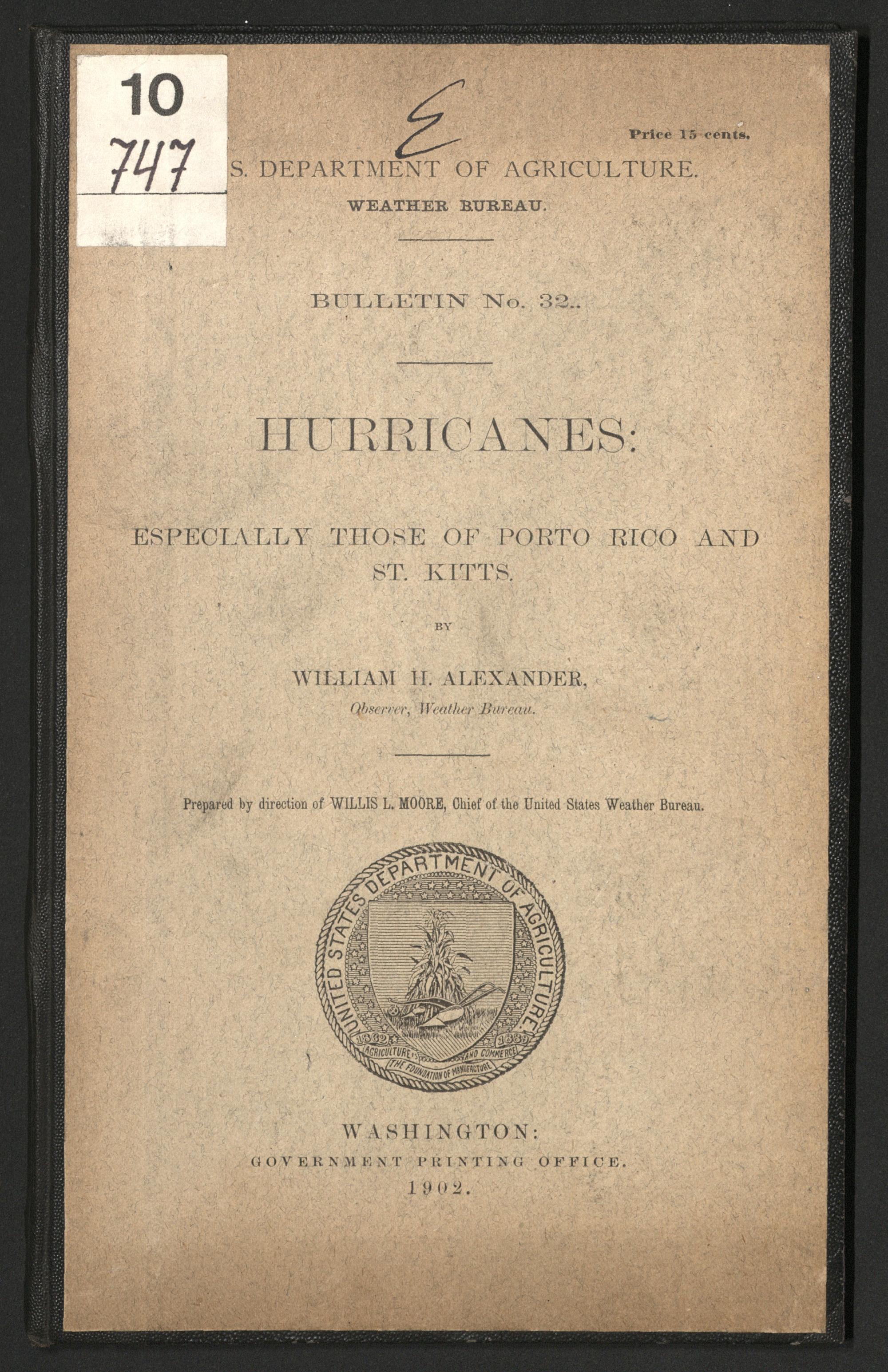 Hurricanes : especially those of Porto Rico and St. Kitts / by William H. Alexander