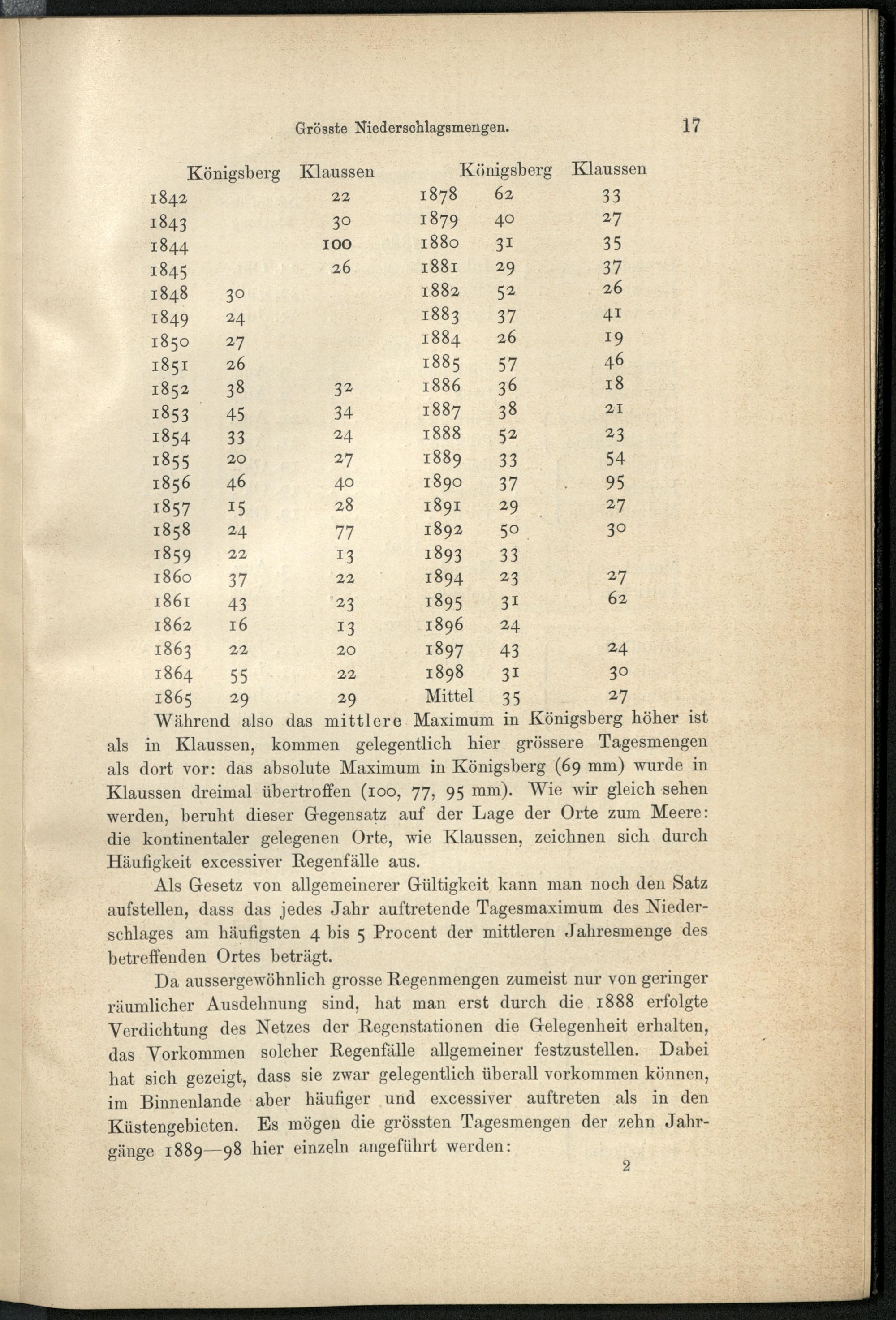 I. Die jährliche Niederschlagshöhe.