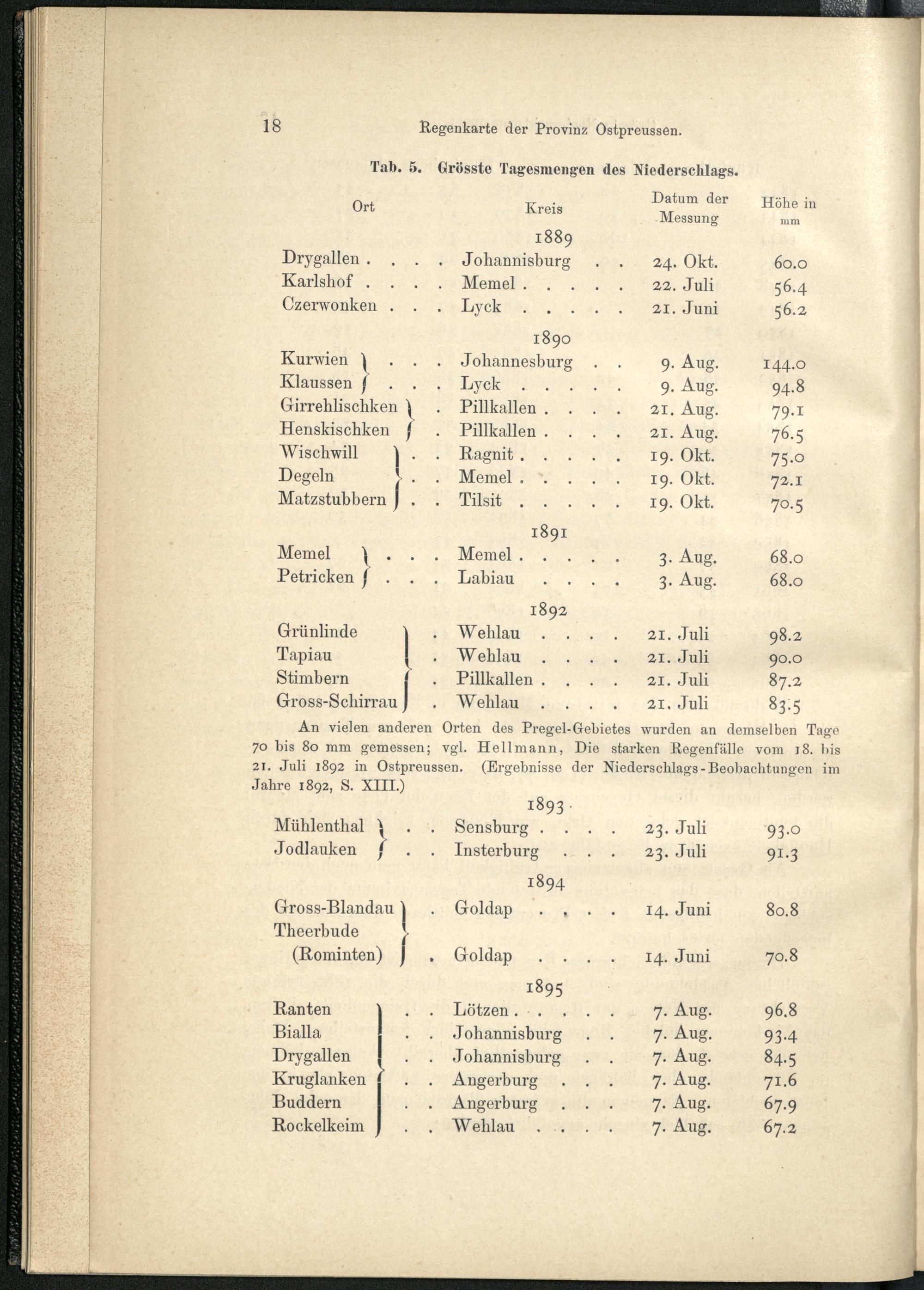 I. Die jährliche Niederschlagshöhe.