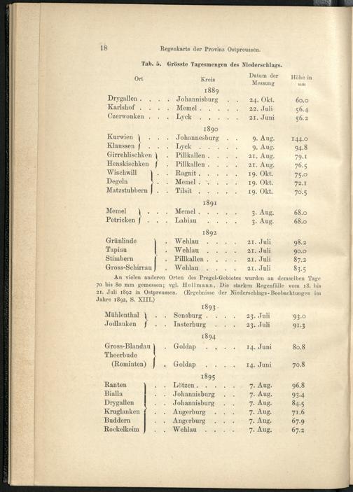 Regenkarte der Provinz Ostpreussen