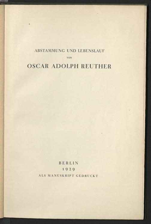 Abstammung und Lebenslauf / von Oskar Adolph Reuther