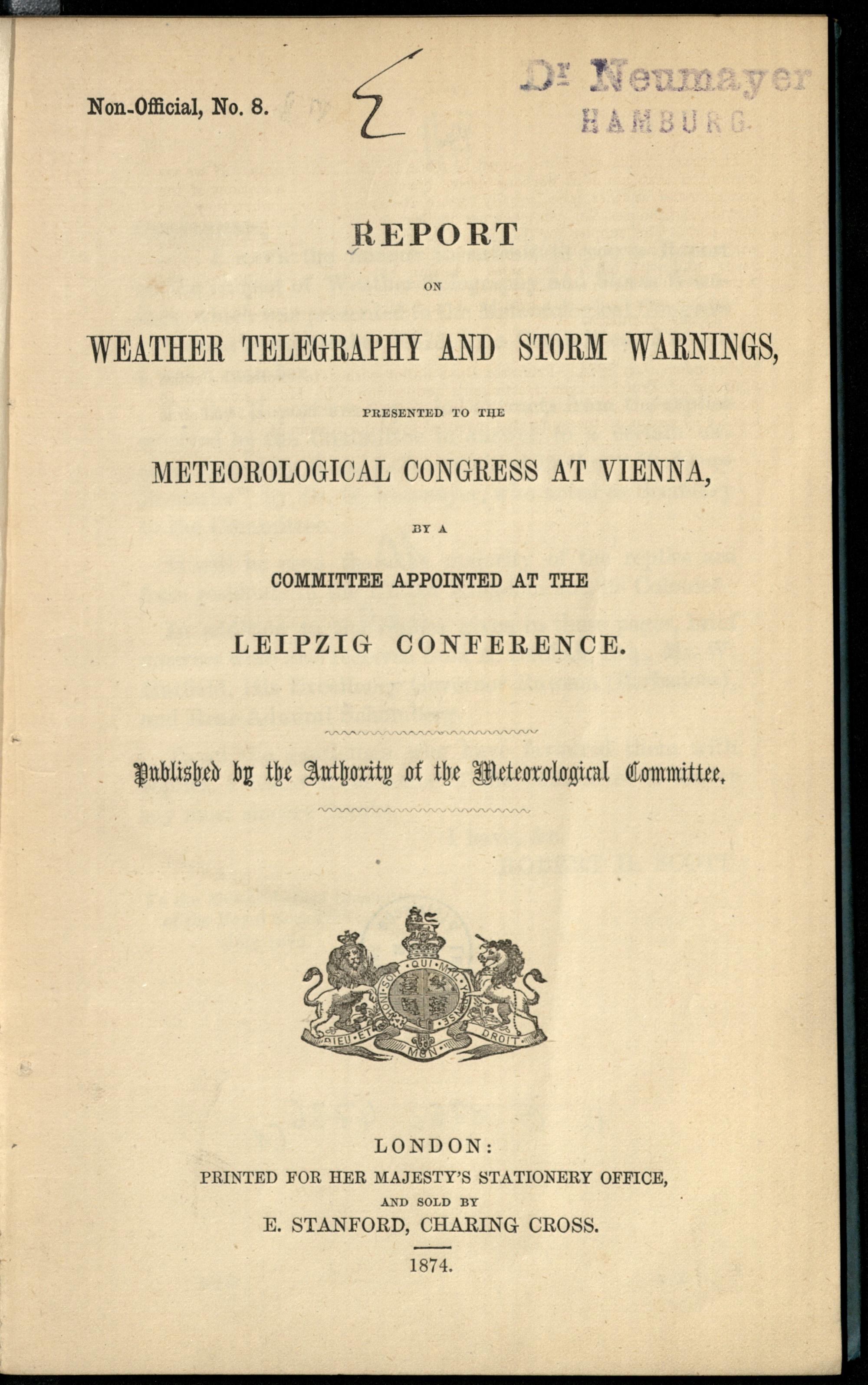 Report on weather telegraphy and storm warnings : Presented to the Meteorological Congress at Vienna, by a comm. appointed at the Leipzig Conference