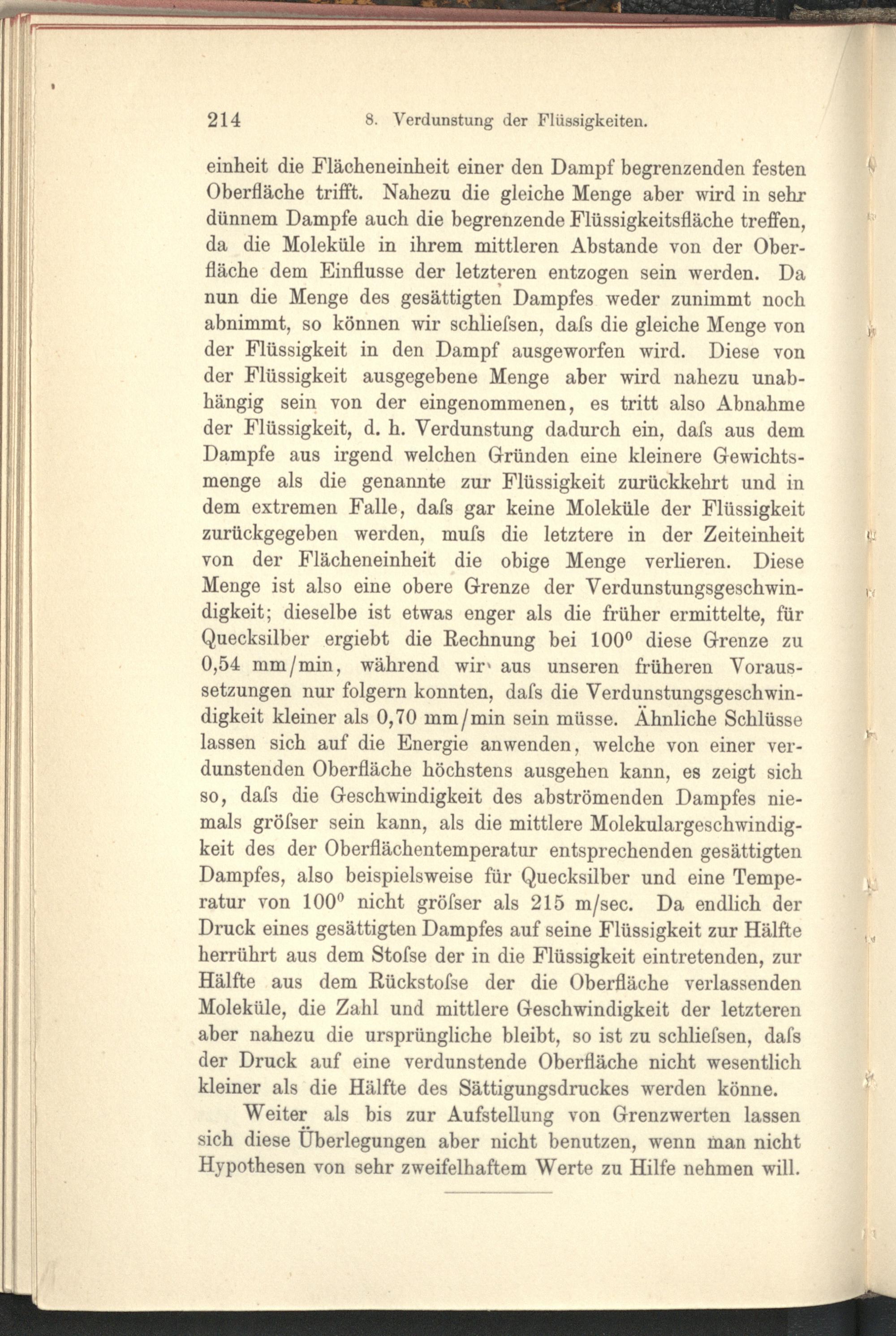 8. Über die Verdunstung der Flüssigkeiten, insbesondere des Quecksilbers, im luftleeren...