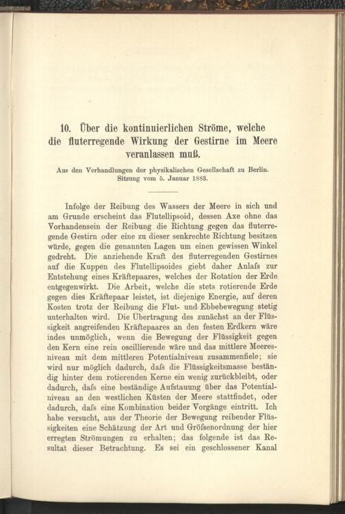 10. Über die kontinuierlichen Ströme, welche die fluterregende Wirkung der Gestirne...