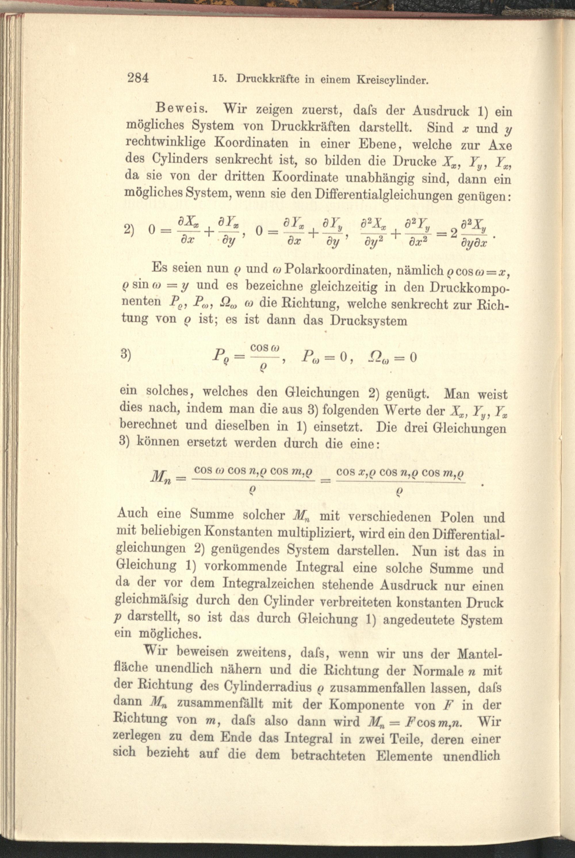 15. Über die Verteilung der Druckkräfte in einem elastischen Kreiscylinder.