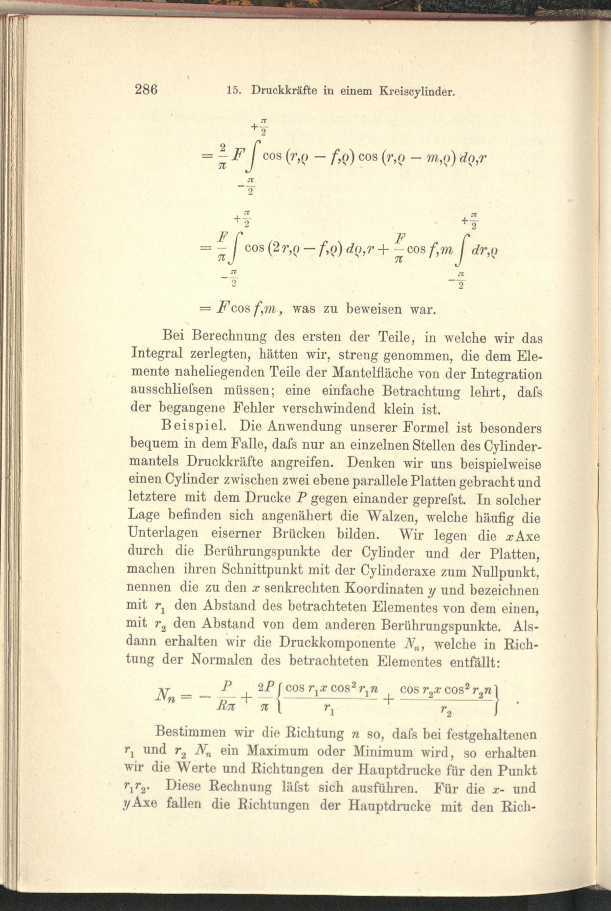 15. Über die Verteilung der Druckkräfte in einem elastischen Kreiscylinder.