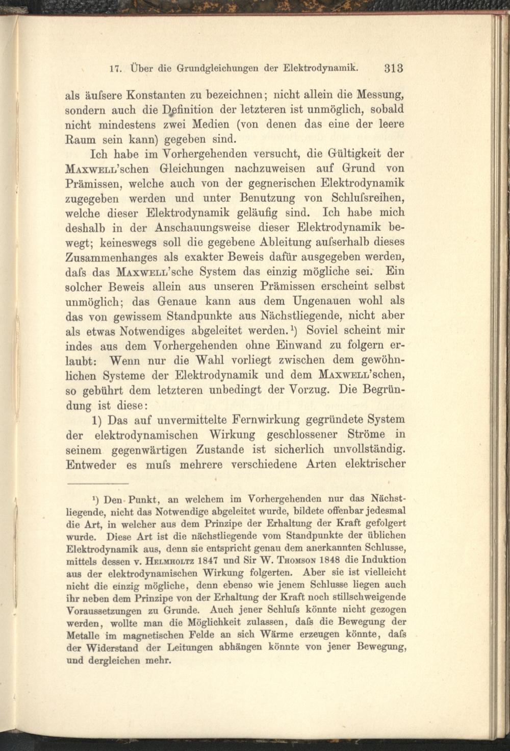17. Über die Beziehungen zwischen den Maxwell'schen elektrodynamischen Grundgleichungen...