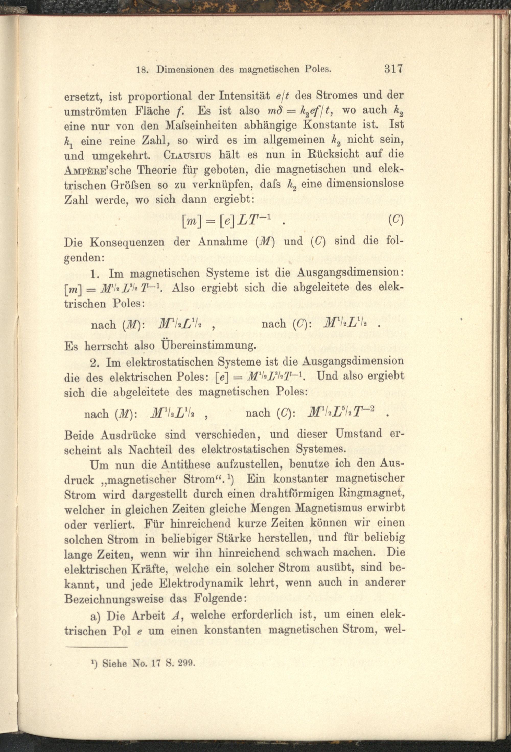 18. Über die Dimensionen des magnetischen Poles in verschiedenen Maßsystemen.