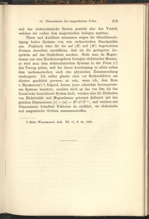 18. Über die Dimensionen des magnetischen Poles in verschiedenen Maßsystemen.