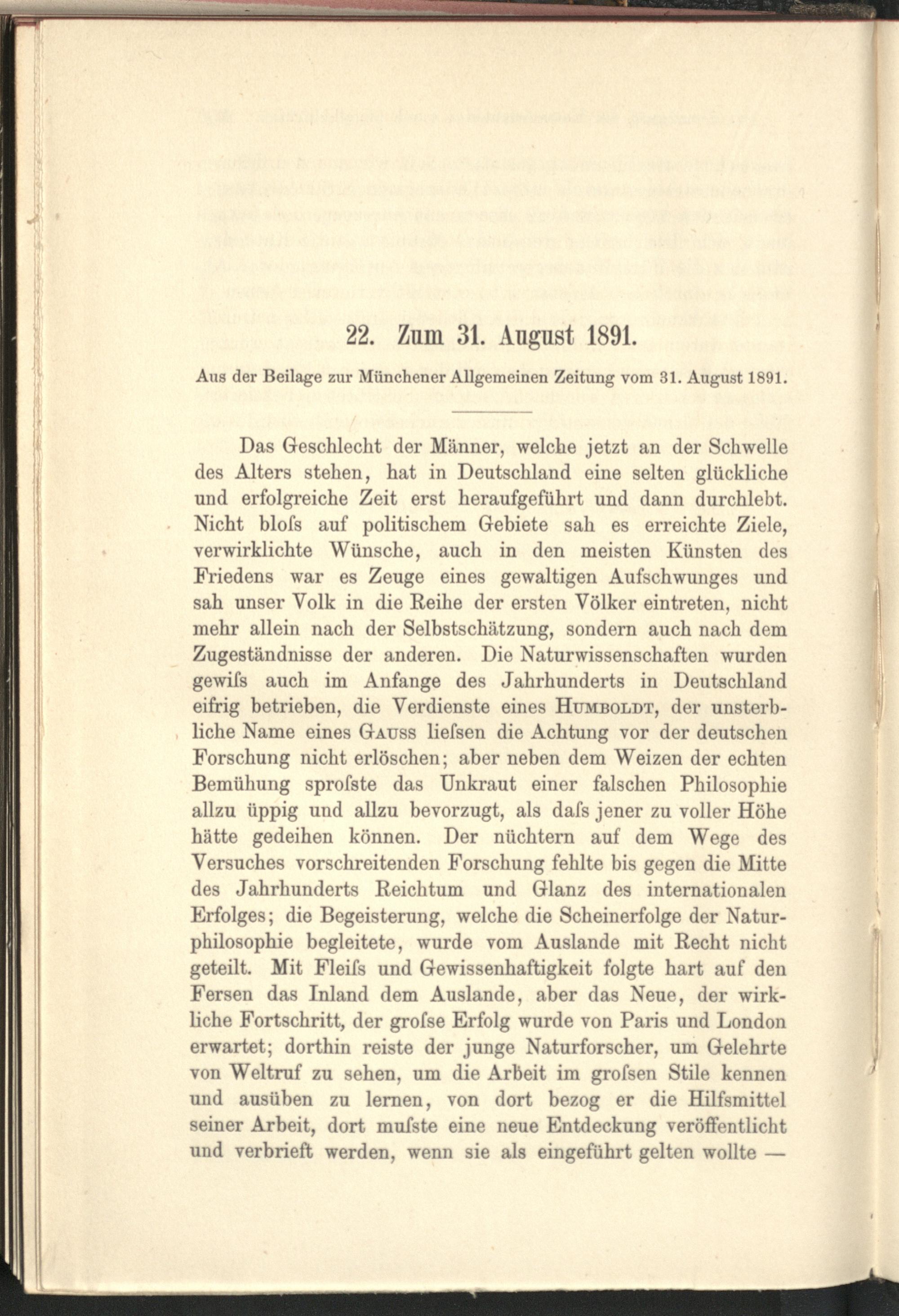 22. Zum 31. August 1891.