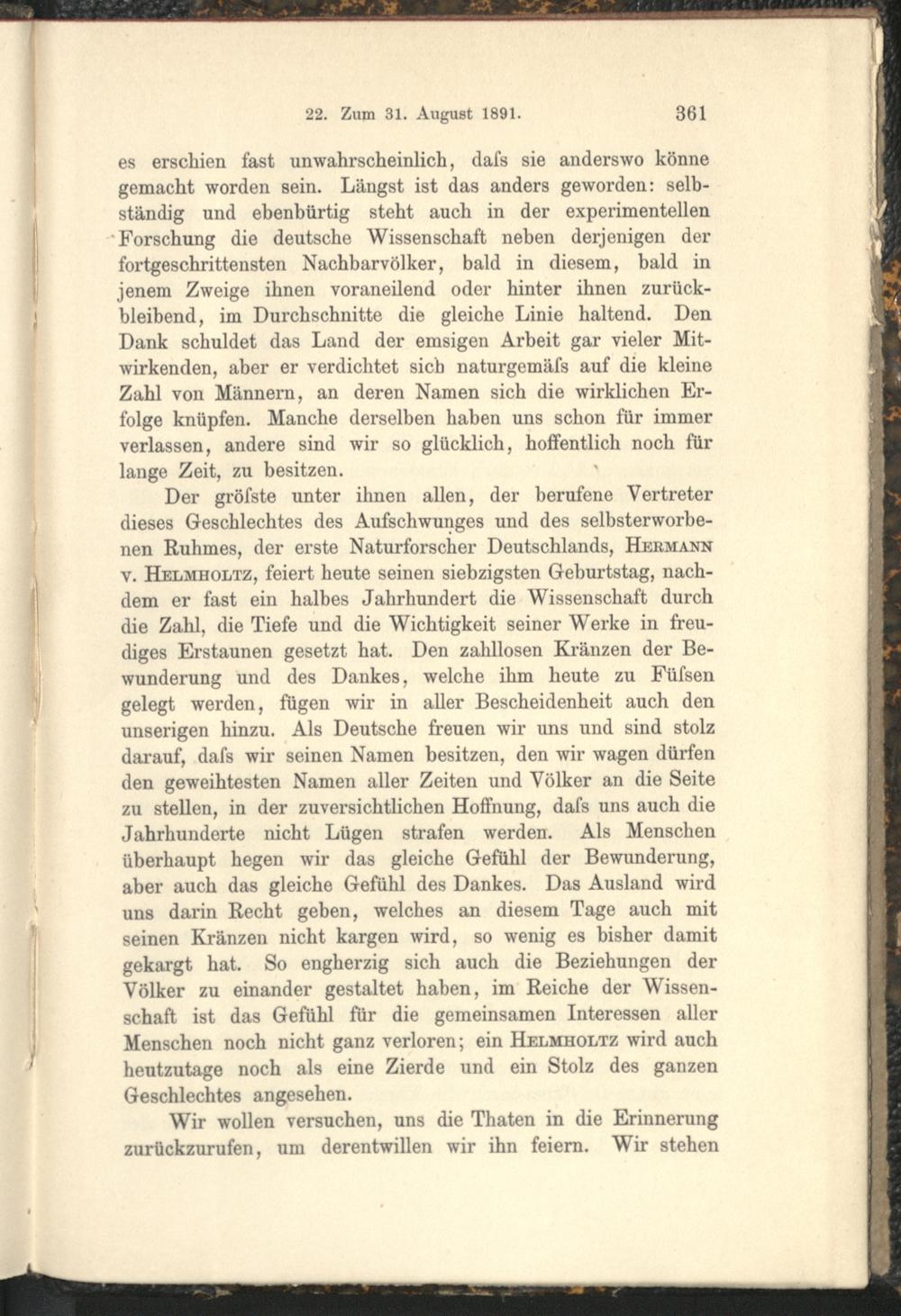22. Zum 31. August 1891.