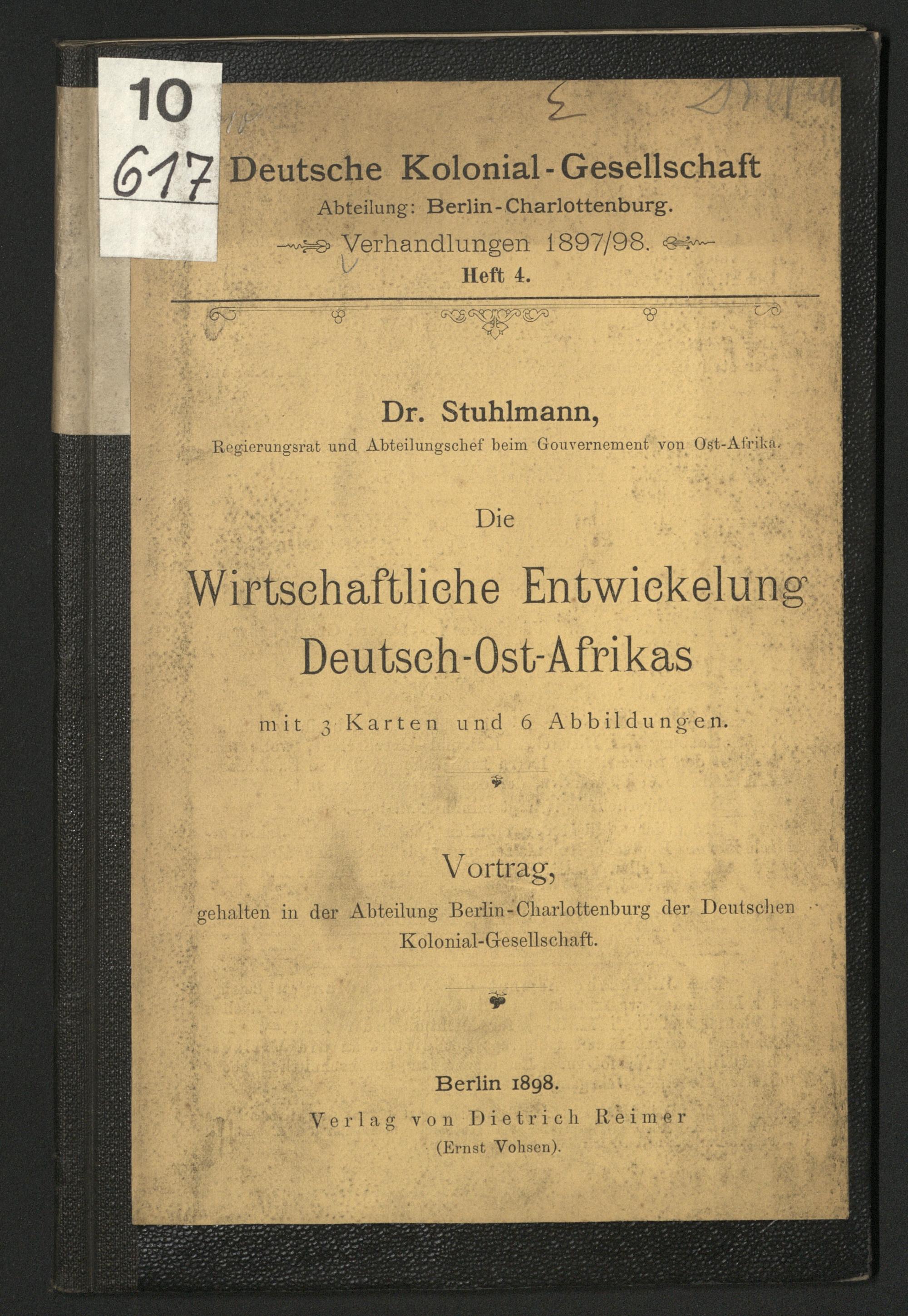 Die wirtschaftliche Entwickelung Deutsch-Ost-Afrikas : Vortrag / von Stuhlmann