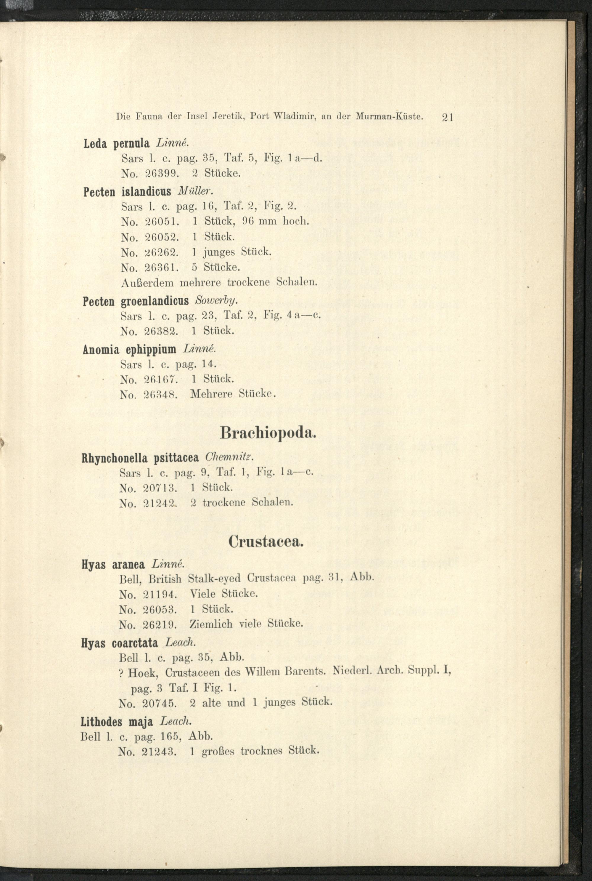 Die Fauna der Insel Jeretik, Port Wladimir, an der Murman-Küste : nach den Sammlungen des Herrn Kapitän Horn : 1. Teil: Die Reptilien, Amphibien, Fische, Mollusken, Brachiopoden, Krebse, Pantopoden und Echinodermen / von Georg [Johann] Pfeffer