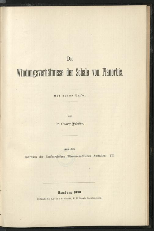 Die Windungsverhältnisse der Schale von Planorbis : mit einer Tafel / von Georg Pfeffer
