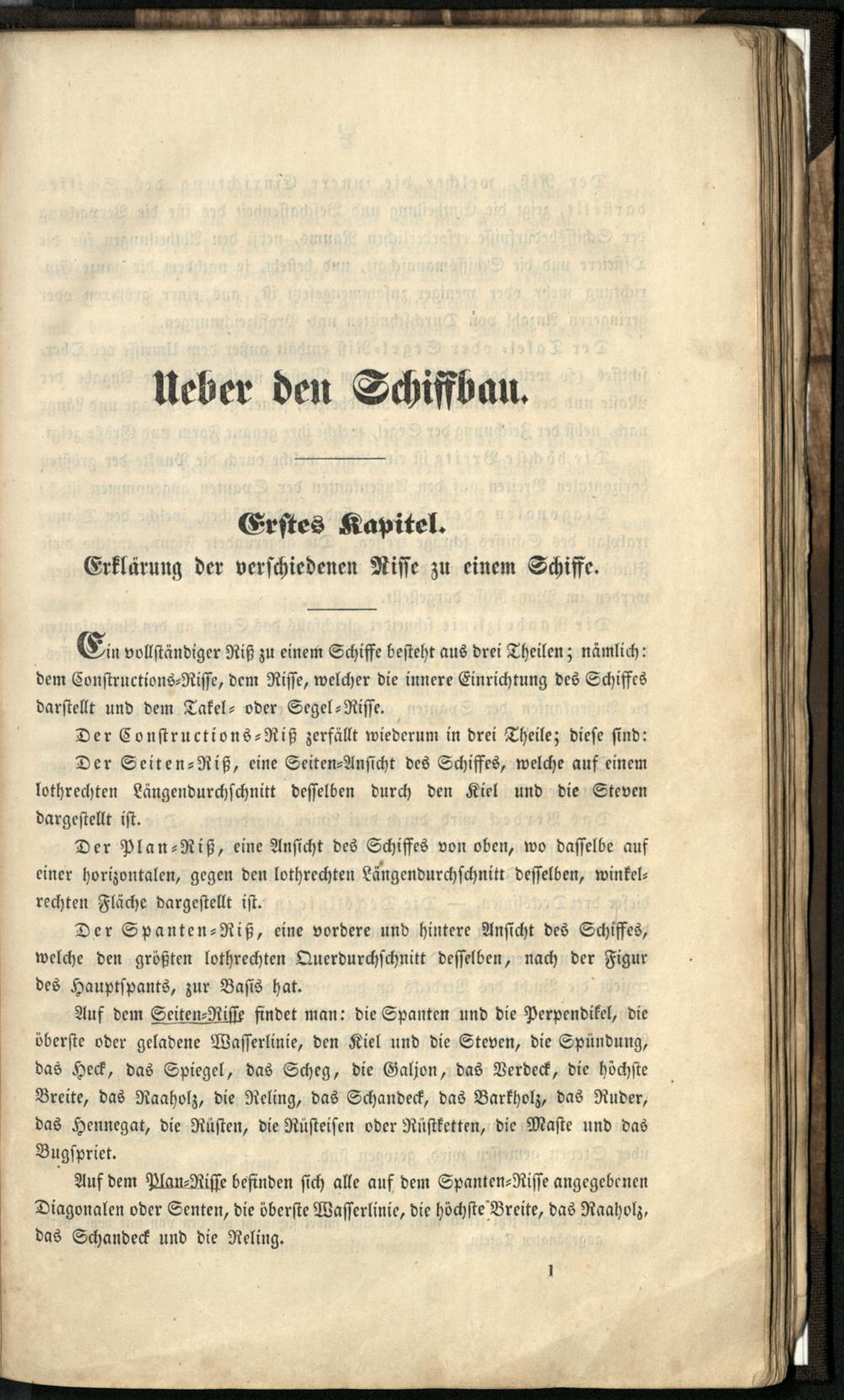 Ueber den Schiffbau. Erstes Kapitel. Erklärung der verschiedenen Risse zu einem Schiffe.