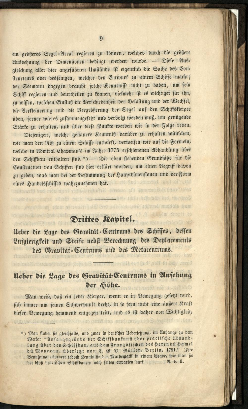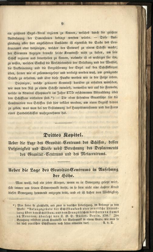 Drittes Kapitel. Ueber die Lage des Gravität=Centrums des Schiffes, [...].