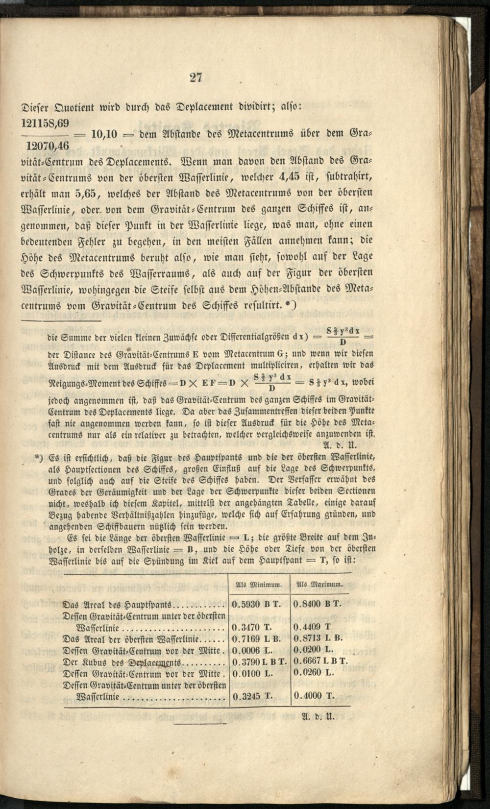 Drittes Kapitel. Ueber die Lage des Gravität=Centrums des Schiffes, [...].