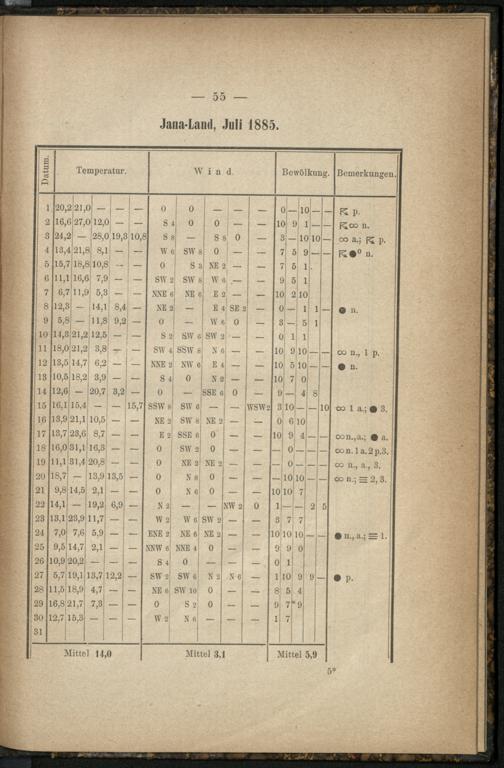 Meteorologische Beobachtungen im Jana-Lande und auf den Neusibirischen Inseln, [...].