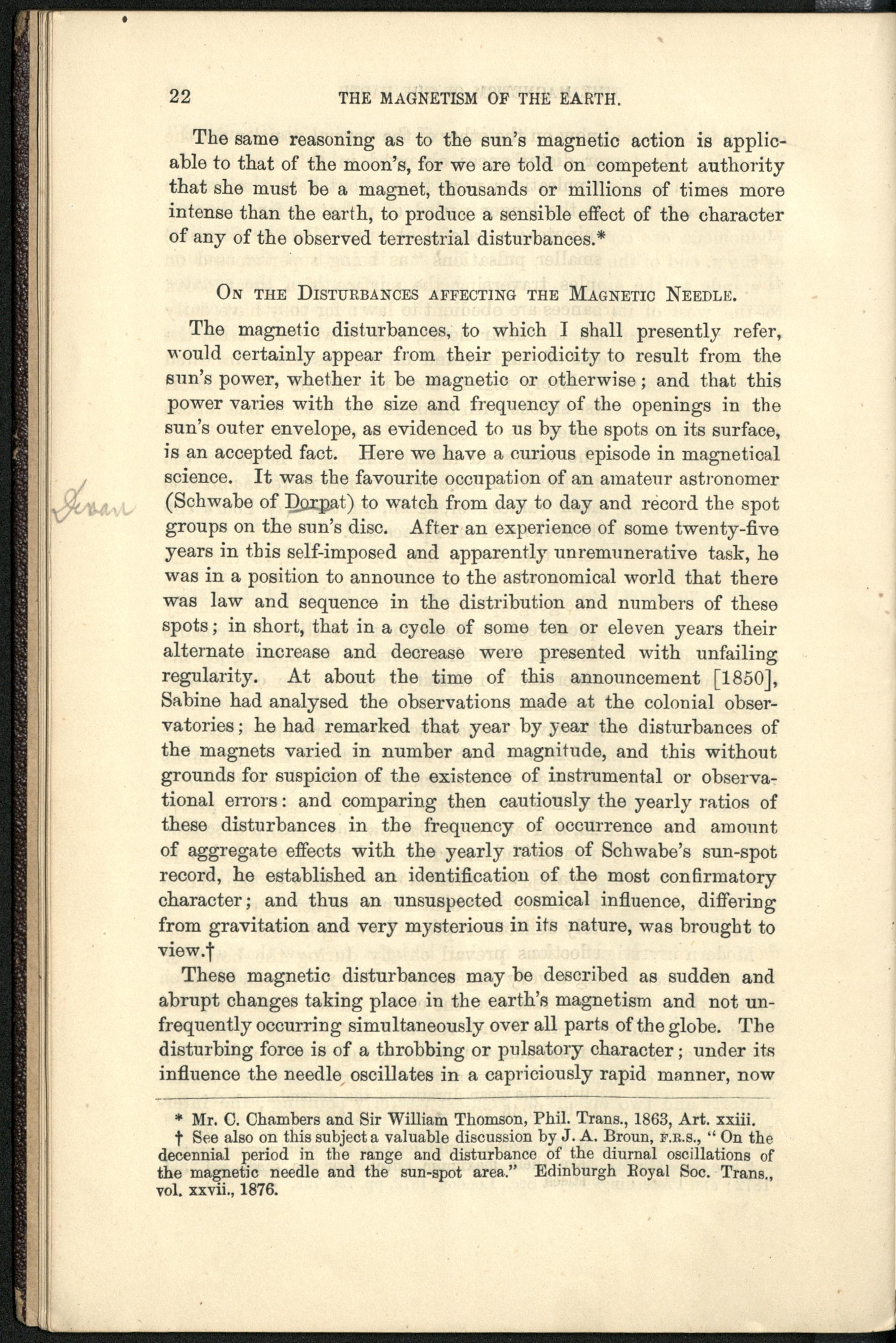 Magnetism of the earth : a lecture on the distribution and direction of the earth's magnetic force at the present time / by F. J. Evans