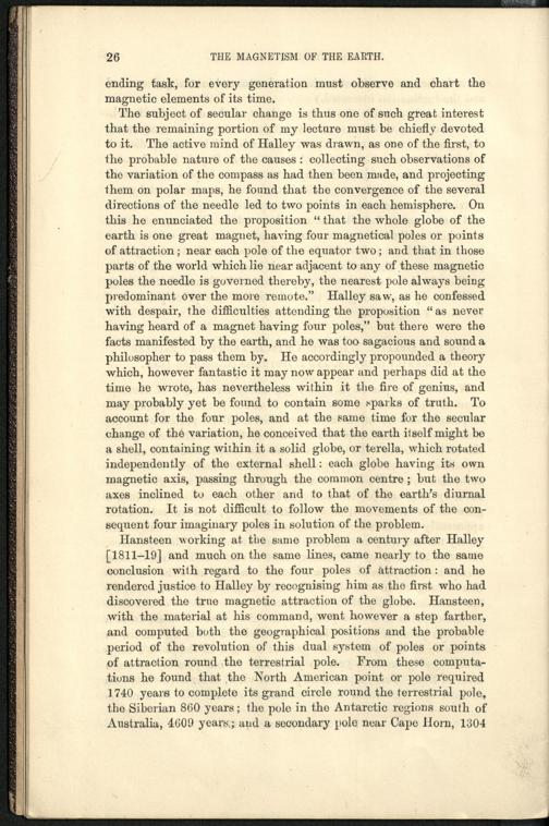Magnetism of the earth : a lecture on the distribution and direction of the earth's magnetic force at the present time / by F. J. Evans