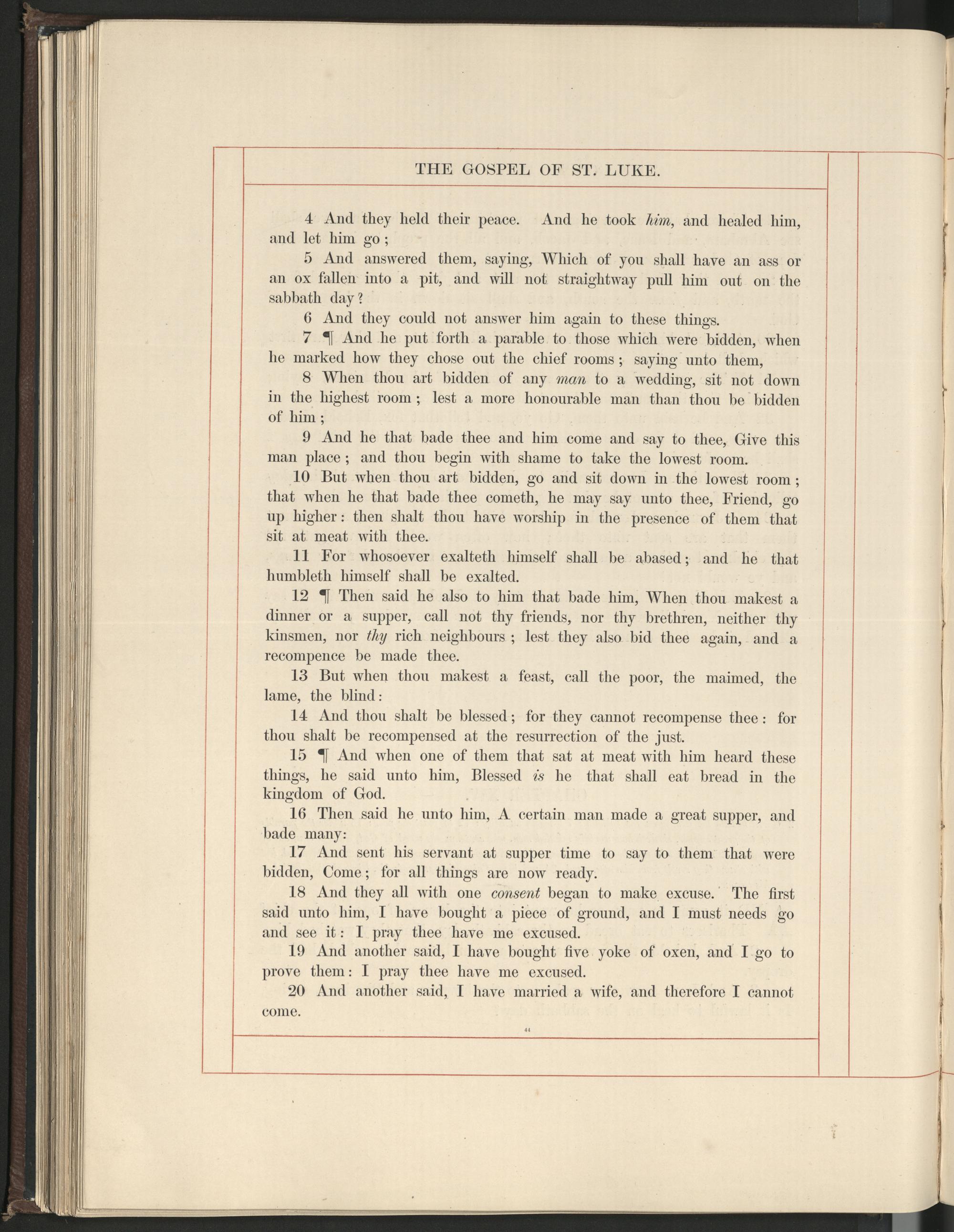 The gospel according to St. Luke.