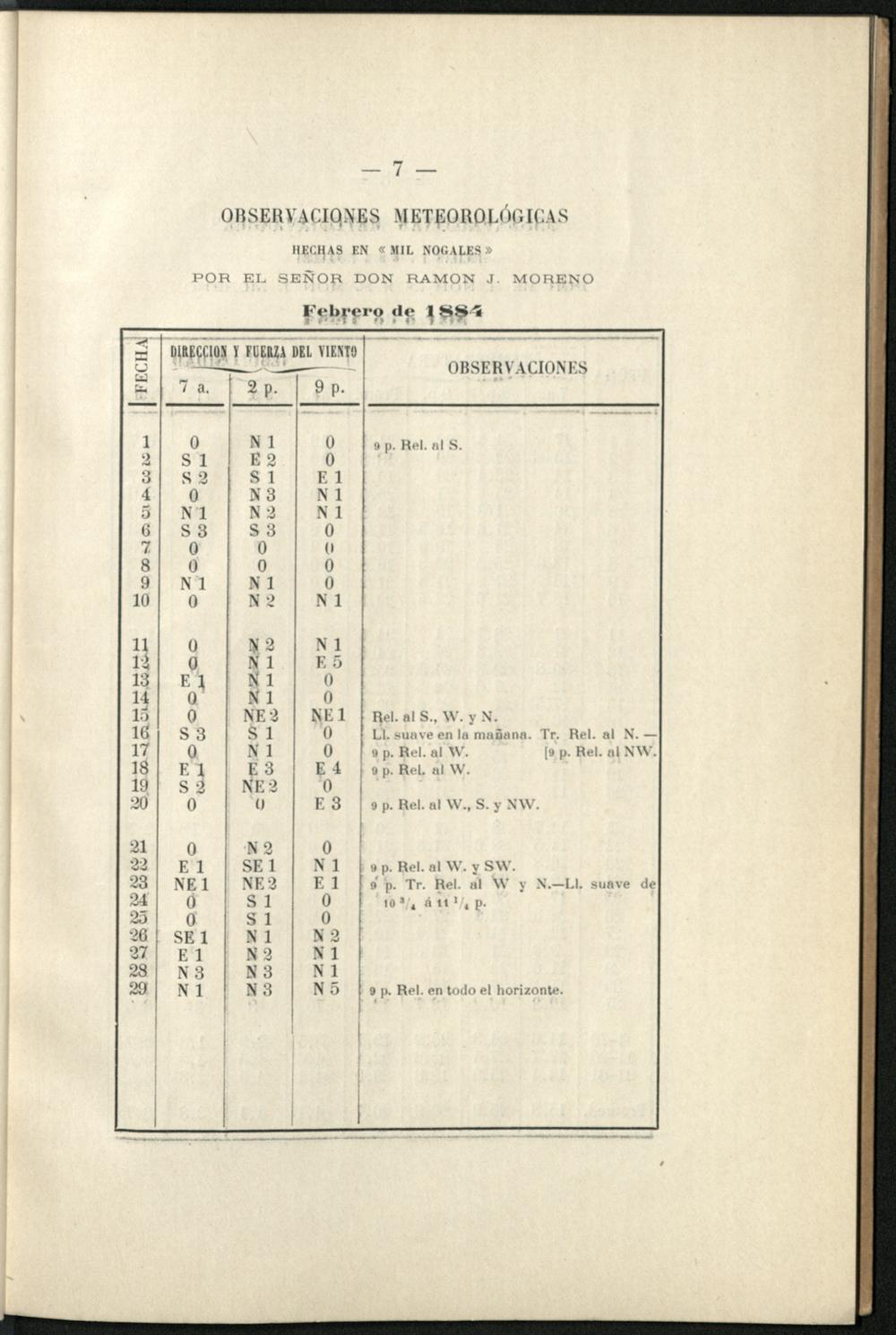 Observaciones meteorológicas : hechas en Mil Nogales (Córdoba) / por Ramon J. Moreno y publ. por Oscar Doering
