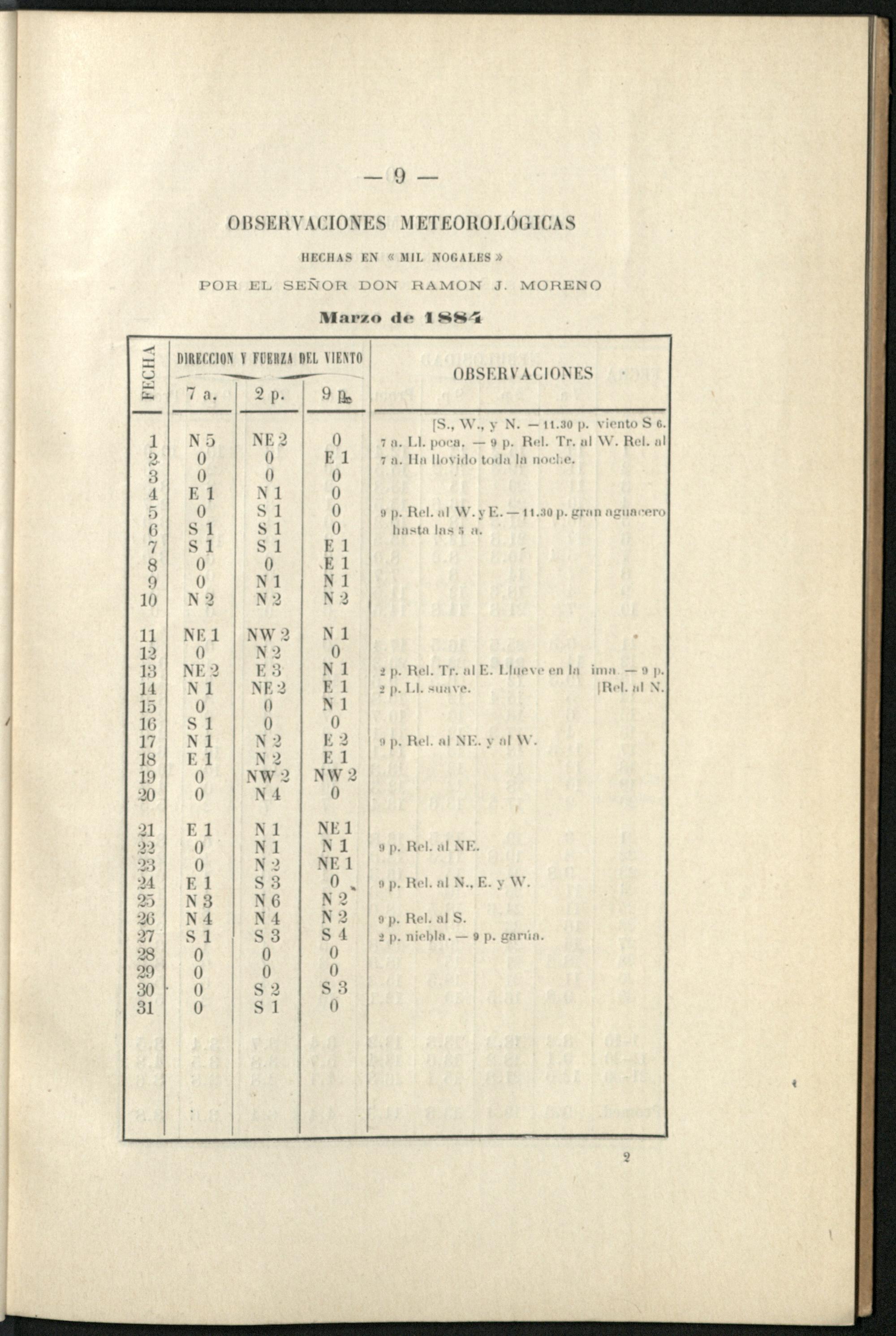 Observaciones meteorológicas : hechas en Mil Nogales (Córdoba) / por Ramon J. Moreno y publ. por Oscar Doering
