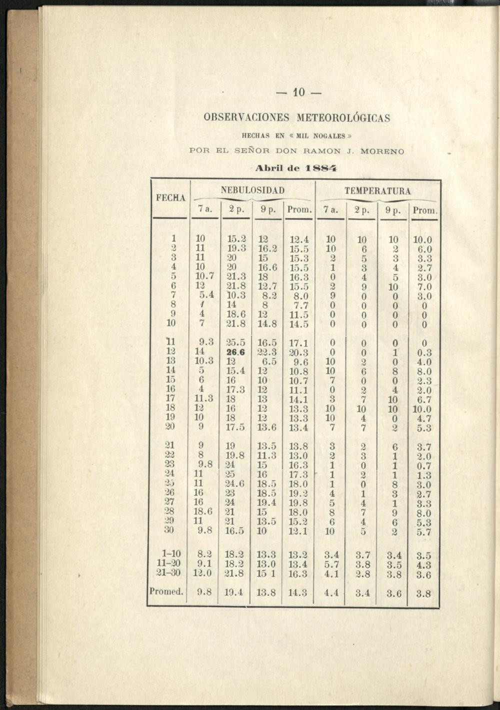Observaciones meteorológicas : hechas en Mil Nogales (Córdoba) / por Ramon J. Moreno y publ. por Oscar Doering