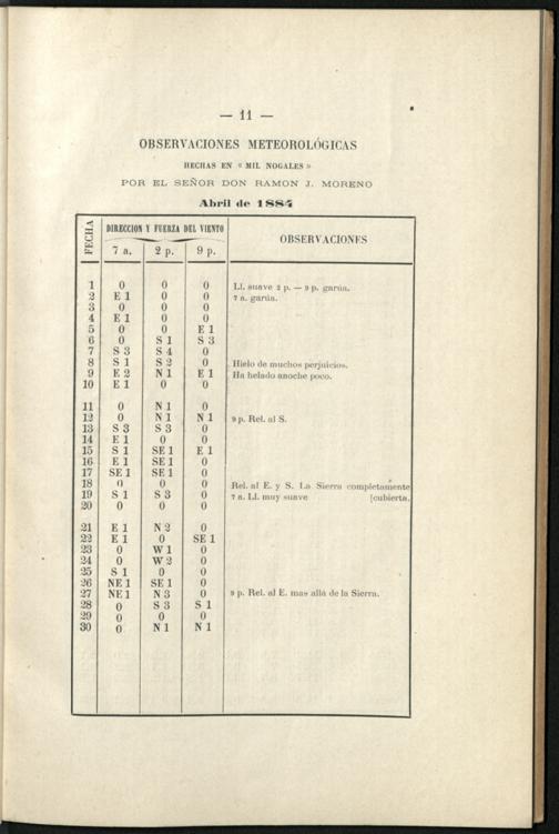 Observaciones meteorológicas : hechas en Mil Nogales (Córdoba) / por Ramon J. Moreno y publ. por Oscar Doering