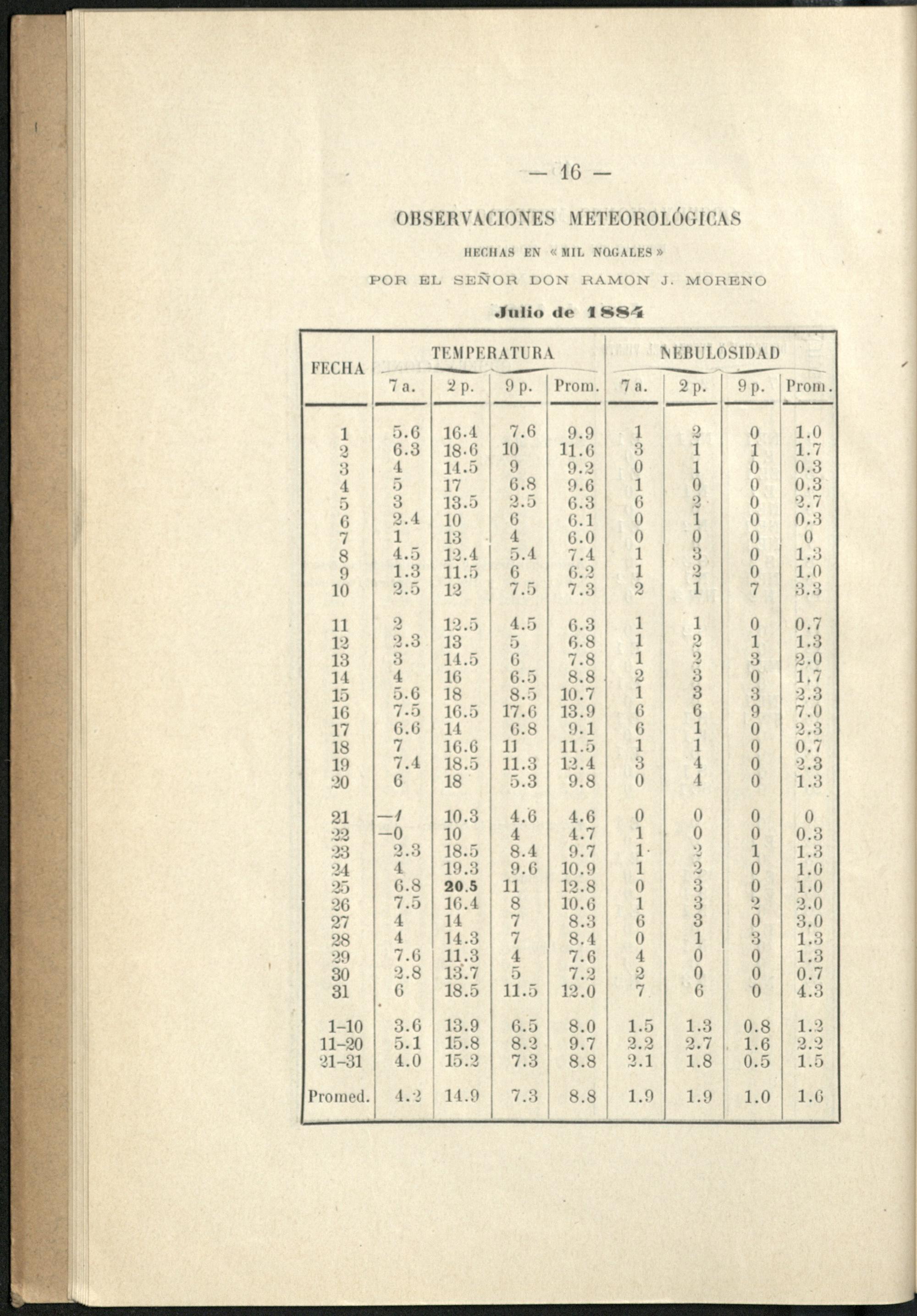 Observaciones meteorológicas : hechas en Mil Nogales (Córdoba) / por Ramon J. Moreno y publ. por Oscar Doering