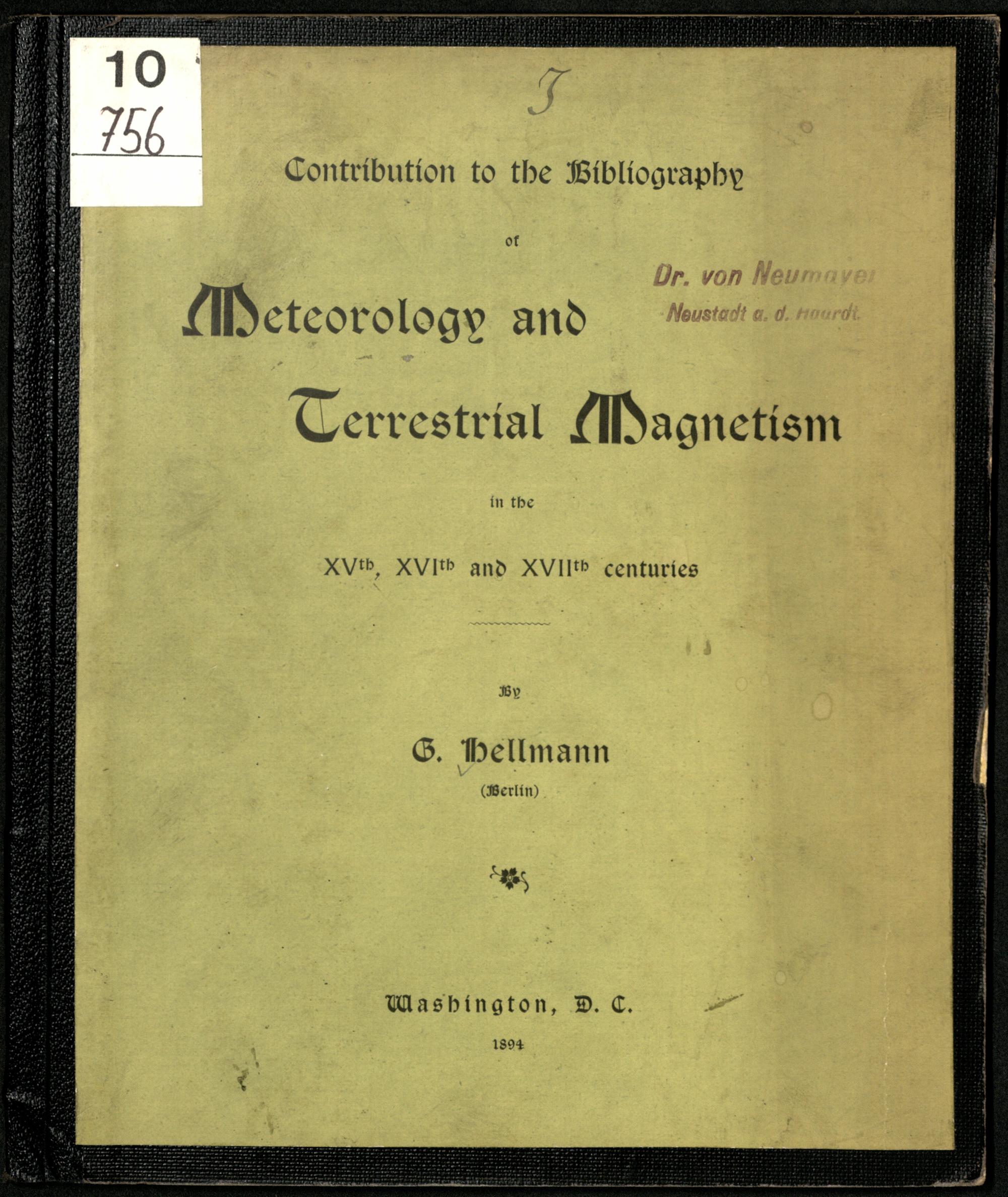Contribution to the bibliography of meteorology and terrestrial magnetism in the 15., 16. and 17. centuries / by G. Hellmann