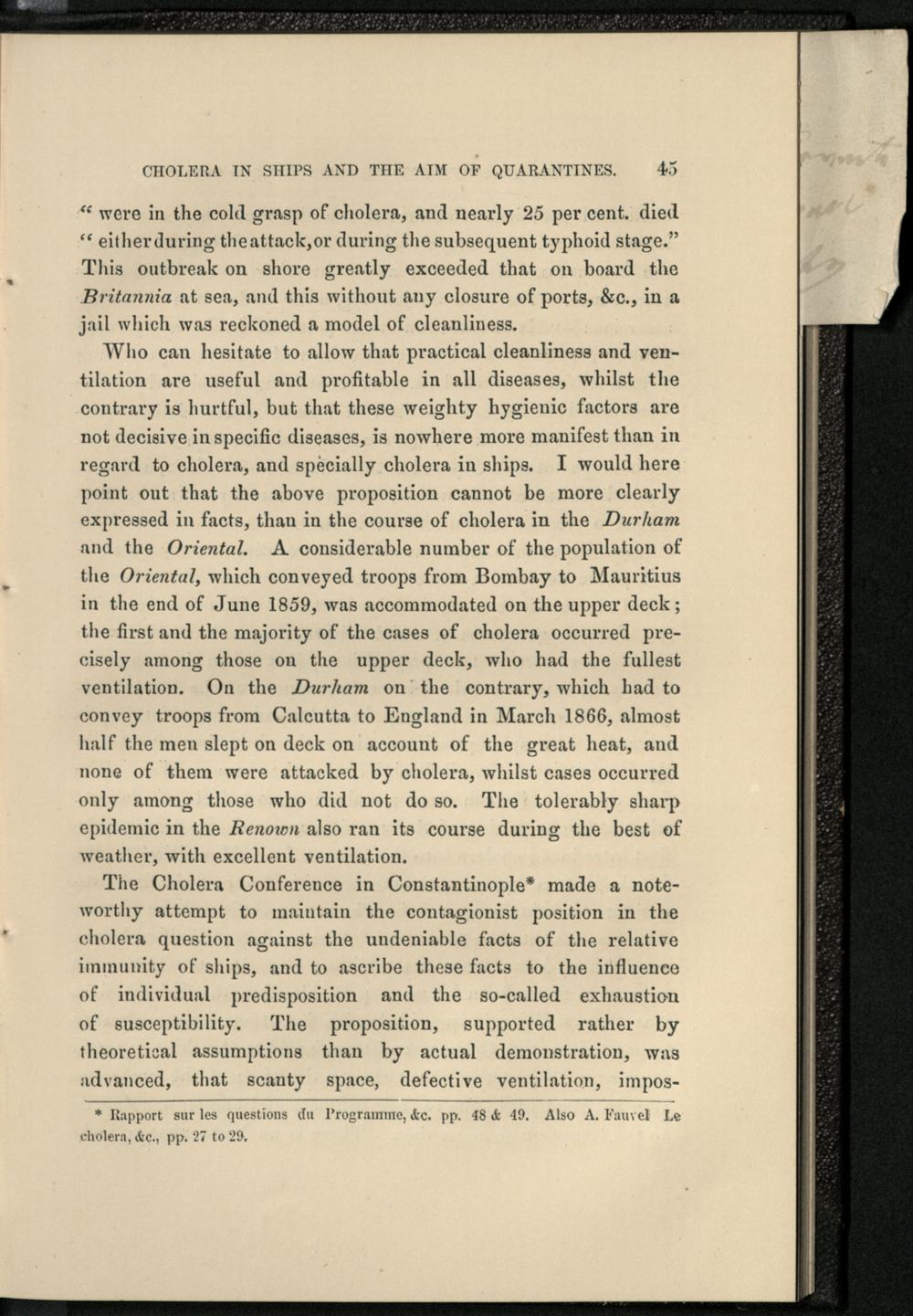 Cholera in Ships and the aim of quarantines / by Max v. Pettenkofer. Translated by D.D. Cunningham