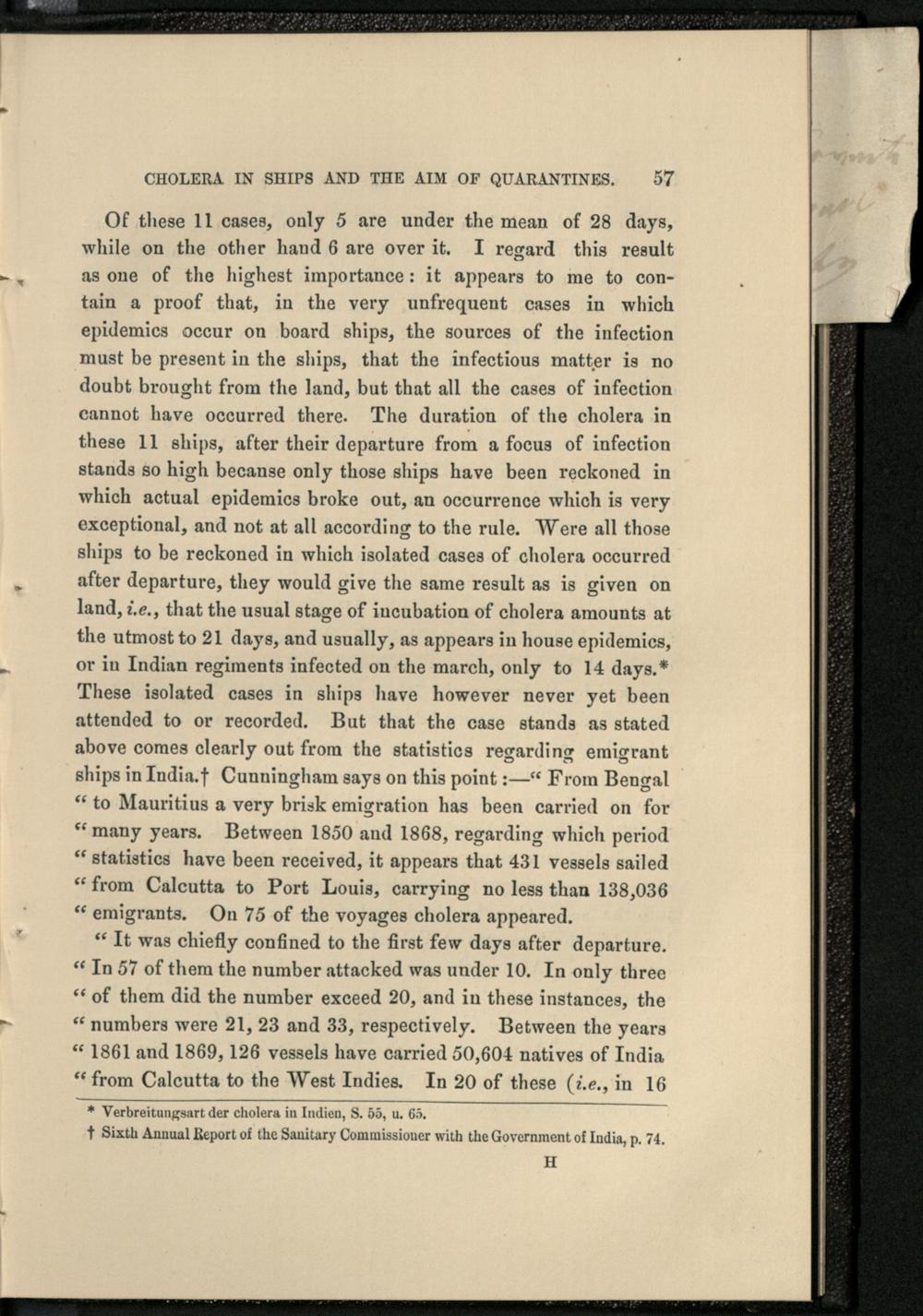 Cholera in Ships and the aim of quarantines / by Max v. Pettenkofer. Translated by D.D. Cunningham
