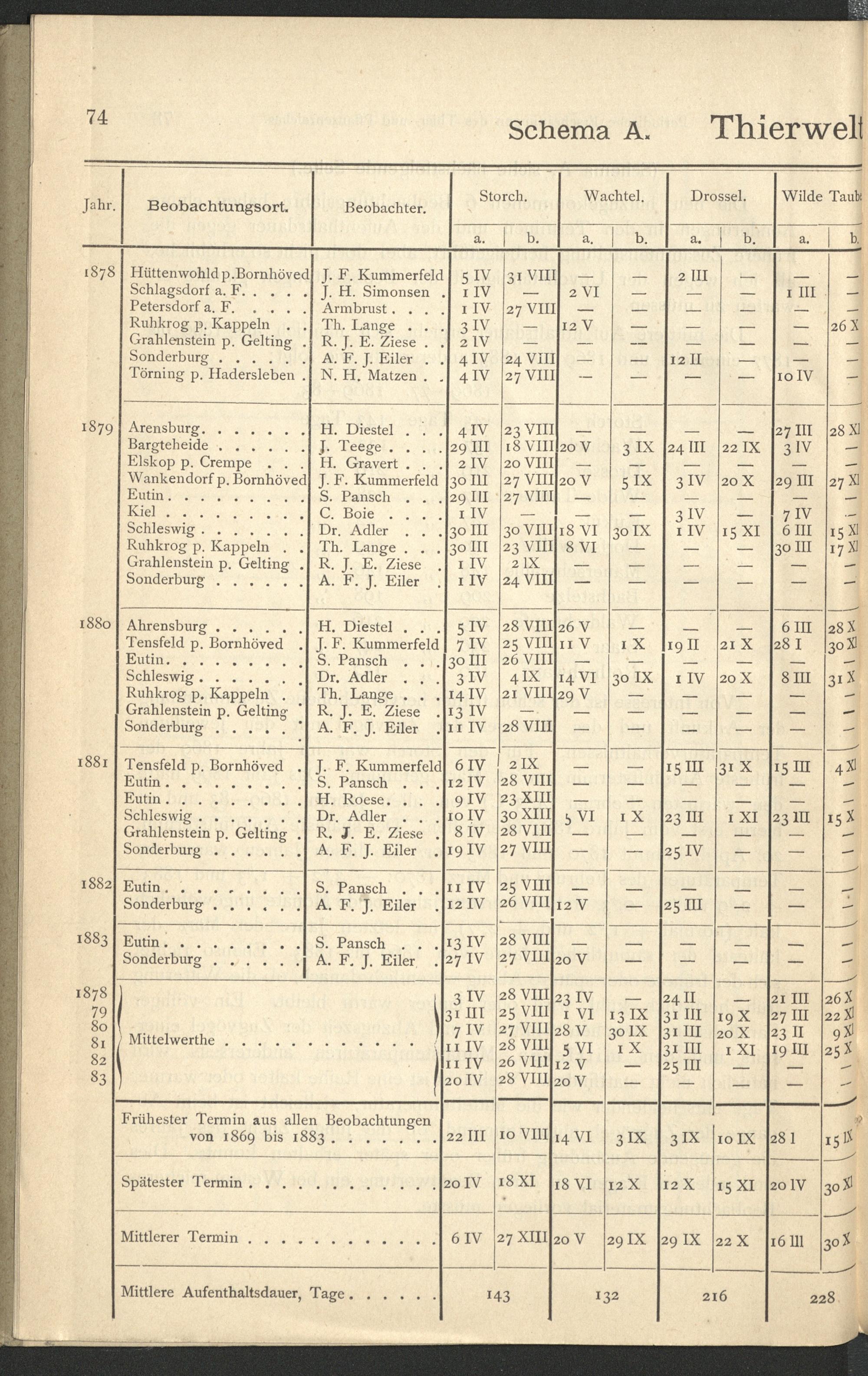Periodische Erscheinungen des Thier- und Pflanzenreiches in Schleswig-Holstein (1878...